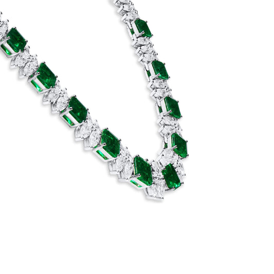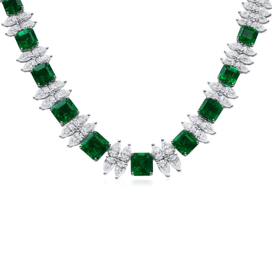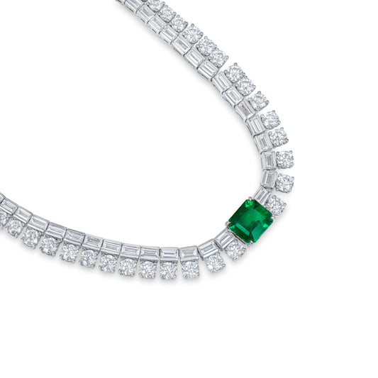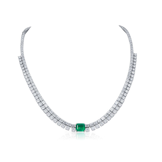 天然 艳绿色 哥伦比亚 祖母绿与钻石项链,2.25克拉(总重19.42克拉),CDC2201340