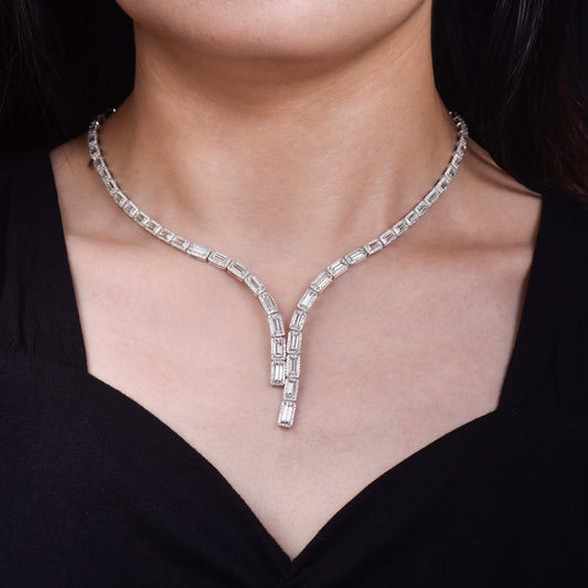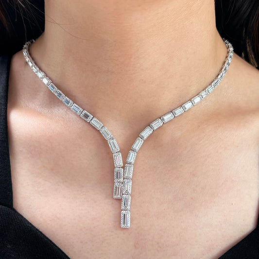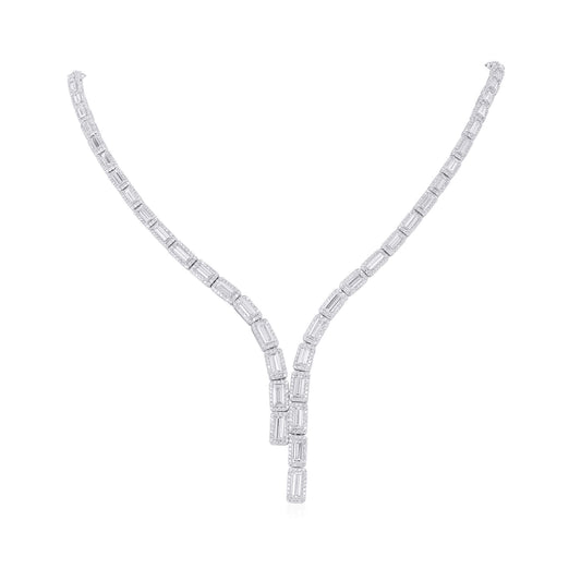 Natural Diamond and Red Ruby Necklace 18K White Gold, Pear Shape, 55.27 Ct. TW