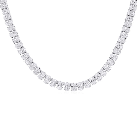 Natural Blue Burmese Sapphire & Diamond Chain Necklace 18K White Gold, 39.01 Ct. TW, unheated