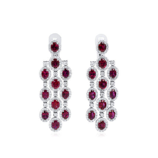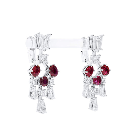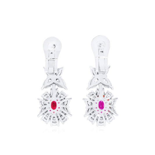 Natural Diamond and Red Ruby Drop Earrings 18K White Gold, 59.41 Ct. TW