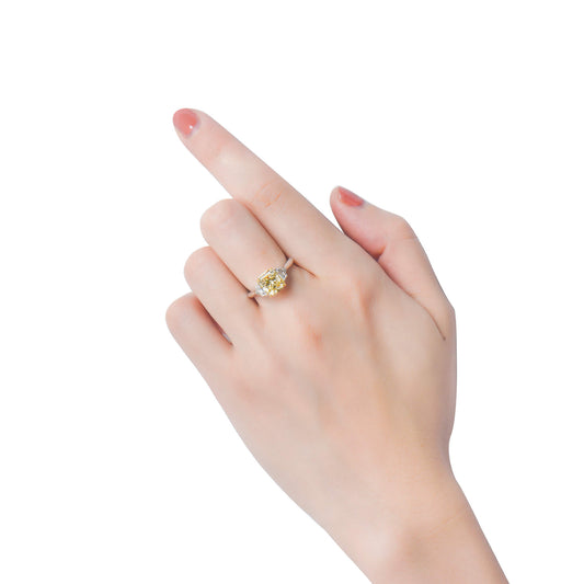 中彩黄 钻石戒指,总重1.71克拉,椭圆形,GIA认证
