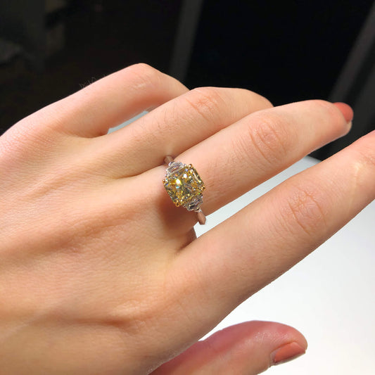 艳彩黄 钻石戒指,总重3.31克拉,枕形,GIA认证