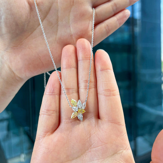 与同样无色的白钻相比,金丝雀黄钻的碳晶体结构中氮含量较高,这使得钻石看起来呈黄色。这是它与通常的白色“无色”钻石的主要区别。