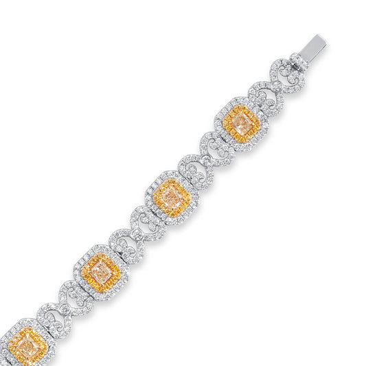 Natural Fancy Yellow Diamond Bracelet 18K White & Yellow Gold, 18.64 Ct. TW