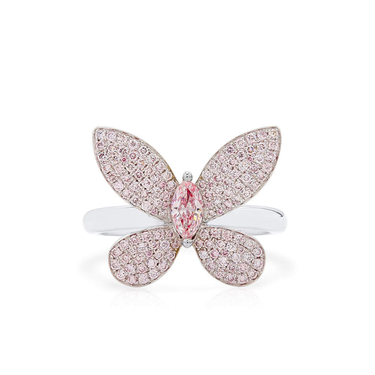 Natural Light Pink Diamond Butterfly Pendant 18K White Gold, Marquise Shape, 0.77 Ct. TW