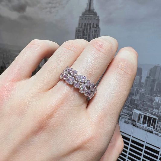 Natural Very Light Pink Diamond Ring 18K White & Rose Gold, Oval Shape, 2.80 Ct. TW
