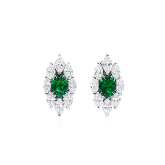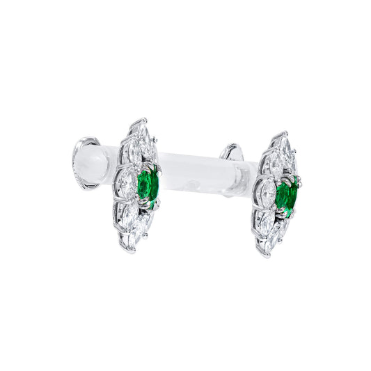 Natural Diamond and Blue Tourmaline Drop Earrings 18K White Gold, Oval Shape, 7.14 Ct. TW