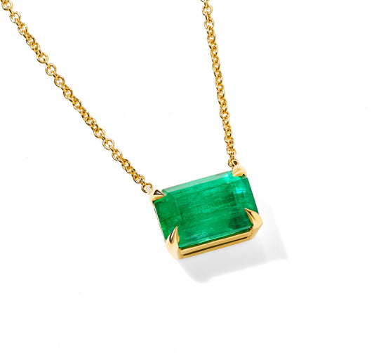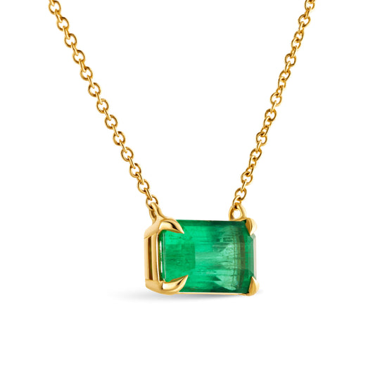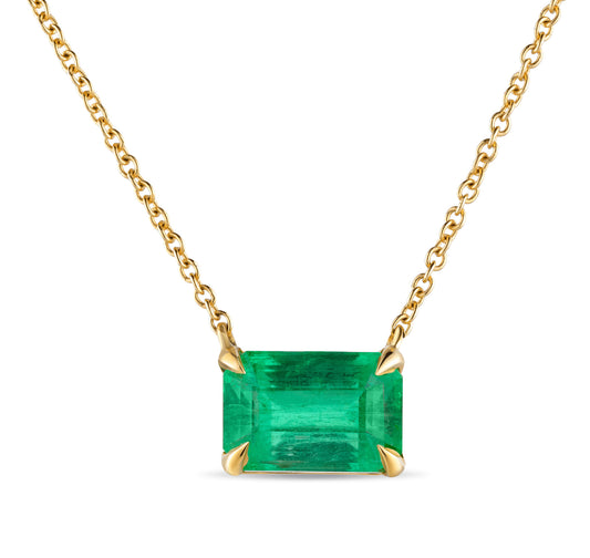Natural Green Colombian Emerald Necklace 18K Yellow Gold, Radiant Shape, 3.17 Ct. TW