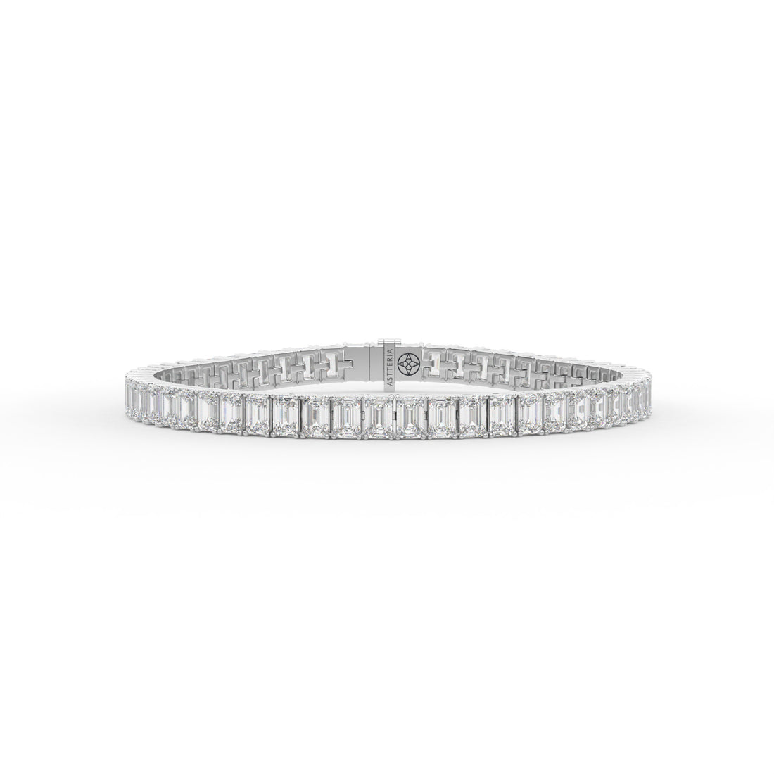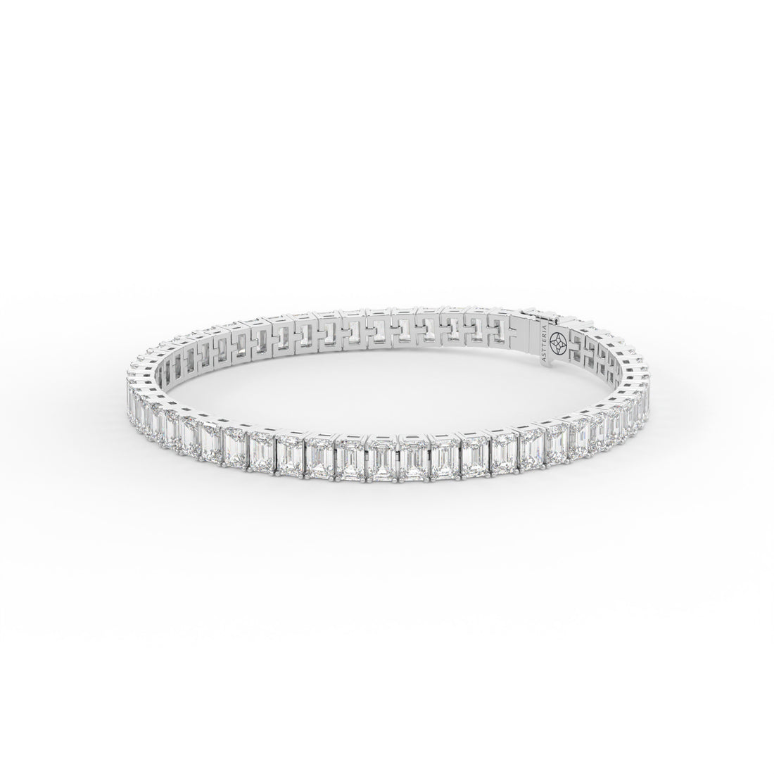 - Crafted as a classic tennis bracelet set with natural emerald-cut diamonds in fine D–F color
