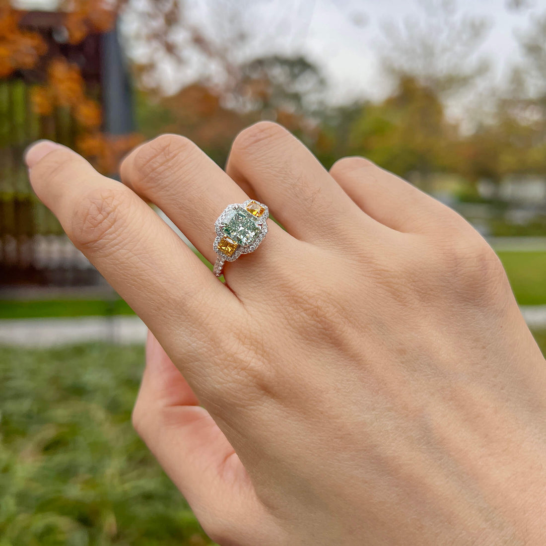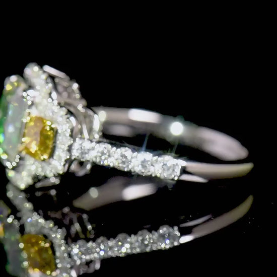 Natural Green and Yellow Diamond Ring
