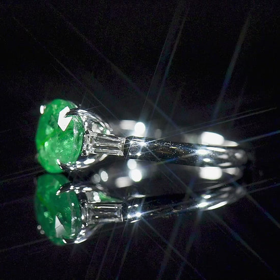 - One round green emerald as the center stone