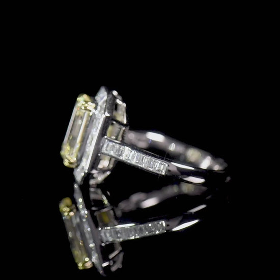 Natural Light Yellow (U-V) Diamond Halo Ring 18K White & Yellow Gold, Radiant Shape, 4.62 Ct. TW