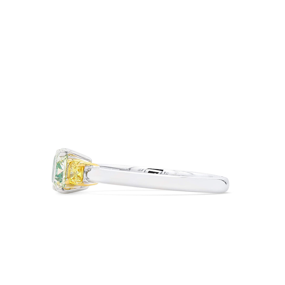Natural Light Yellow Green Diamond Three Stone Ring