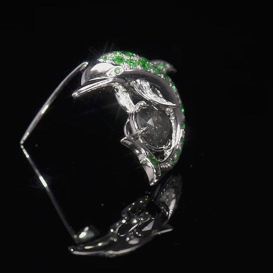 Natural Emerald & Diamond Dolphin Brooch
