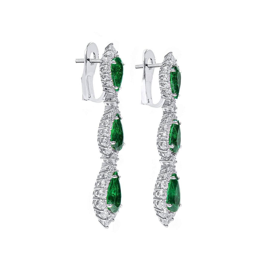 Natural Green Colombia Emerald Earrings 16.70 Ct. TW, Pear shape, C.DUNAIGRE Certified