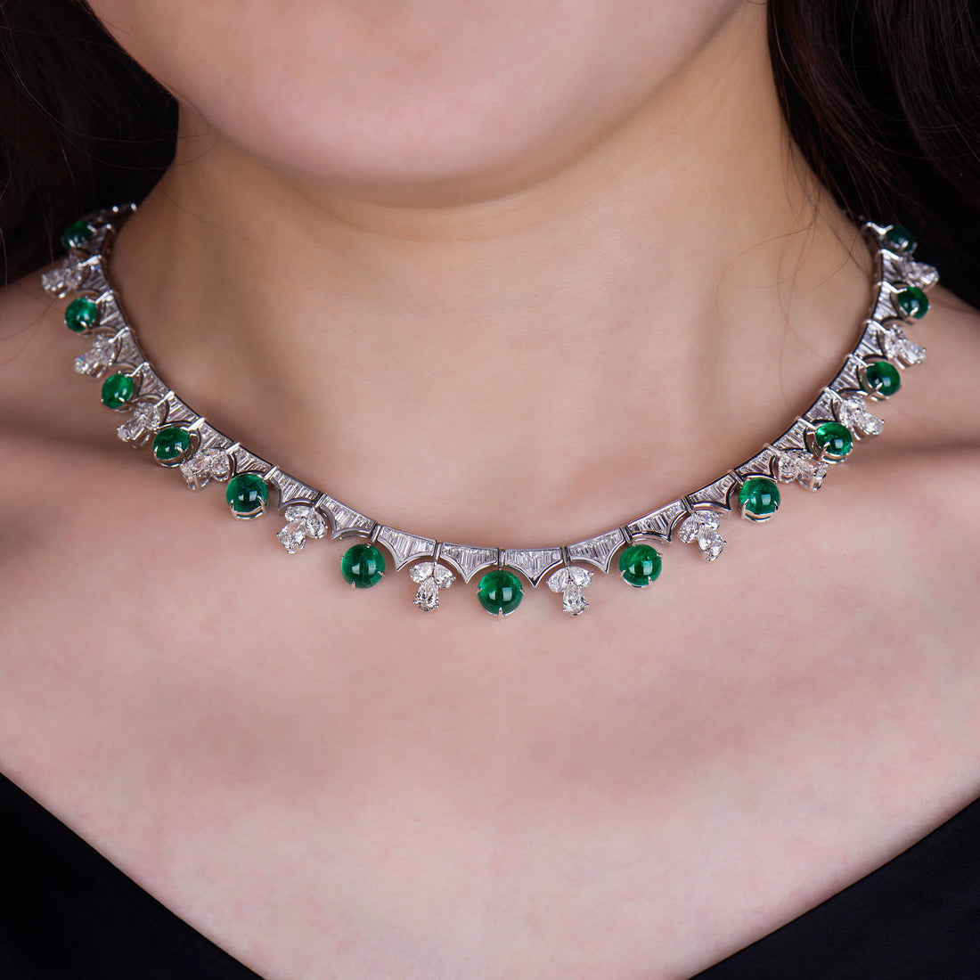 Natural Green Colombia Emerald Necklace, 37.43 Ct. TW, Round shape, GRS Certified