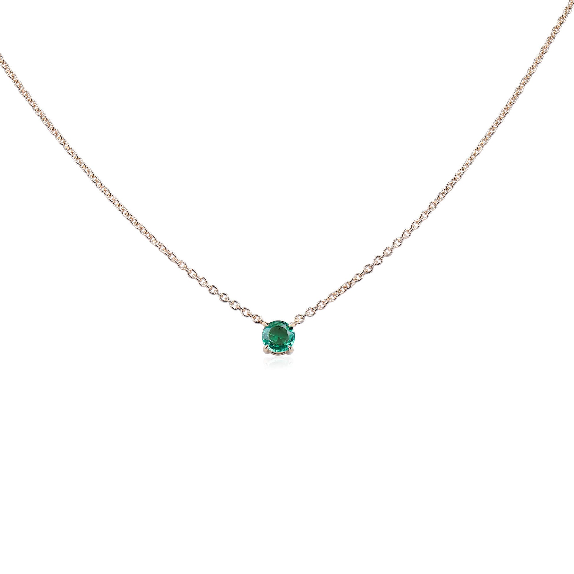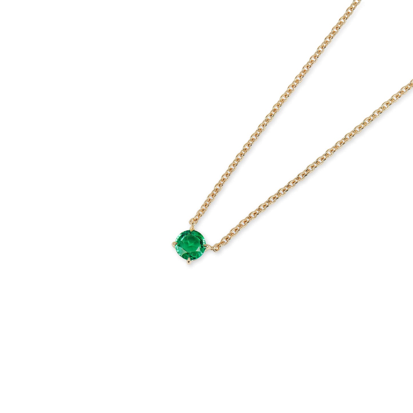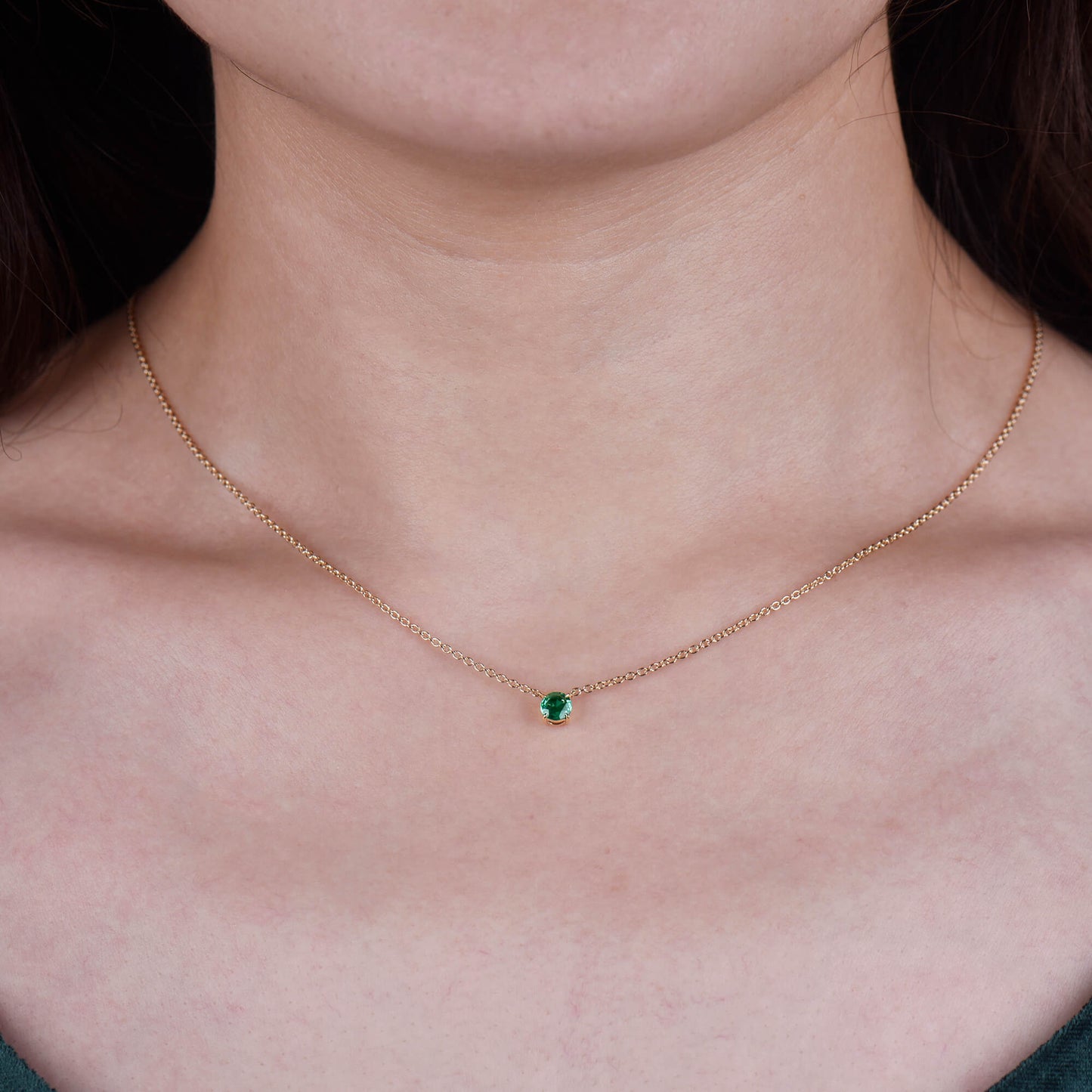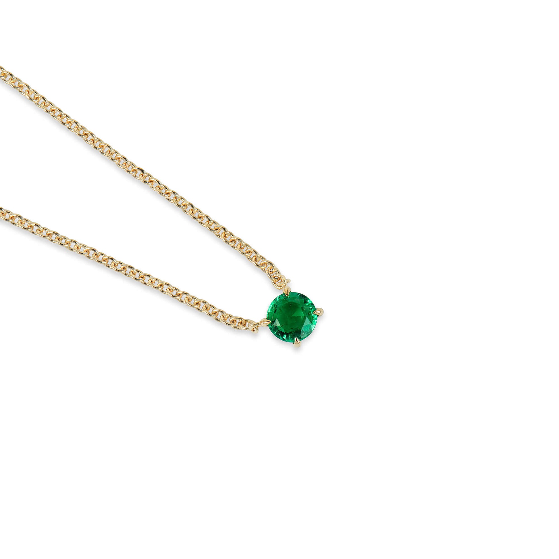 Natural Green Emerald Necklace 18K Yellow Gold, Round Shape, 0.36 Ct. TW