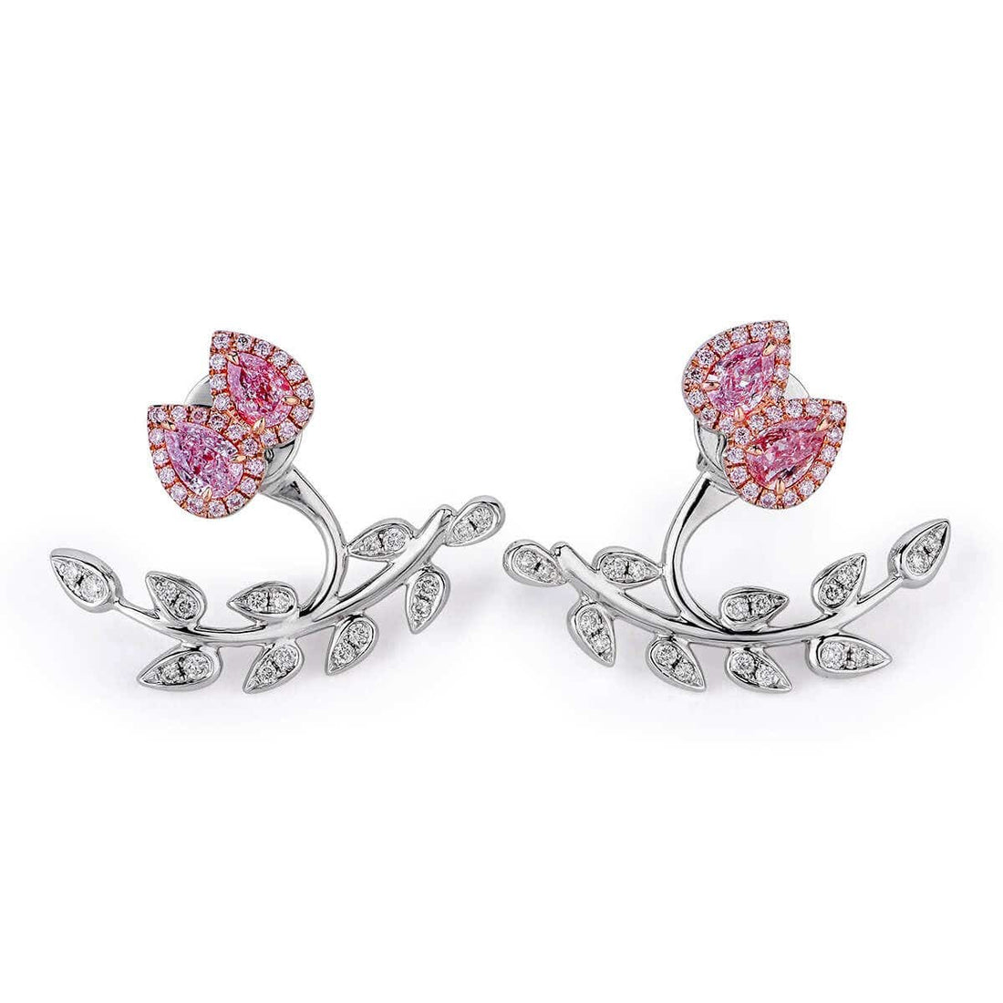 Natural Pink & White Diamond Cluster Earrings — 18K White Gold, Pear Shape, 1.20 Ct. TW
