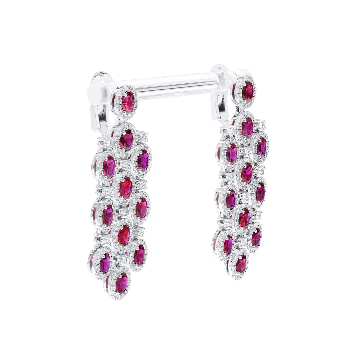 Natural Red Ruby Chandelier Earrings 18K White Gold, Oval Shape, 10.62 Ct. TW, unheated