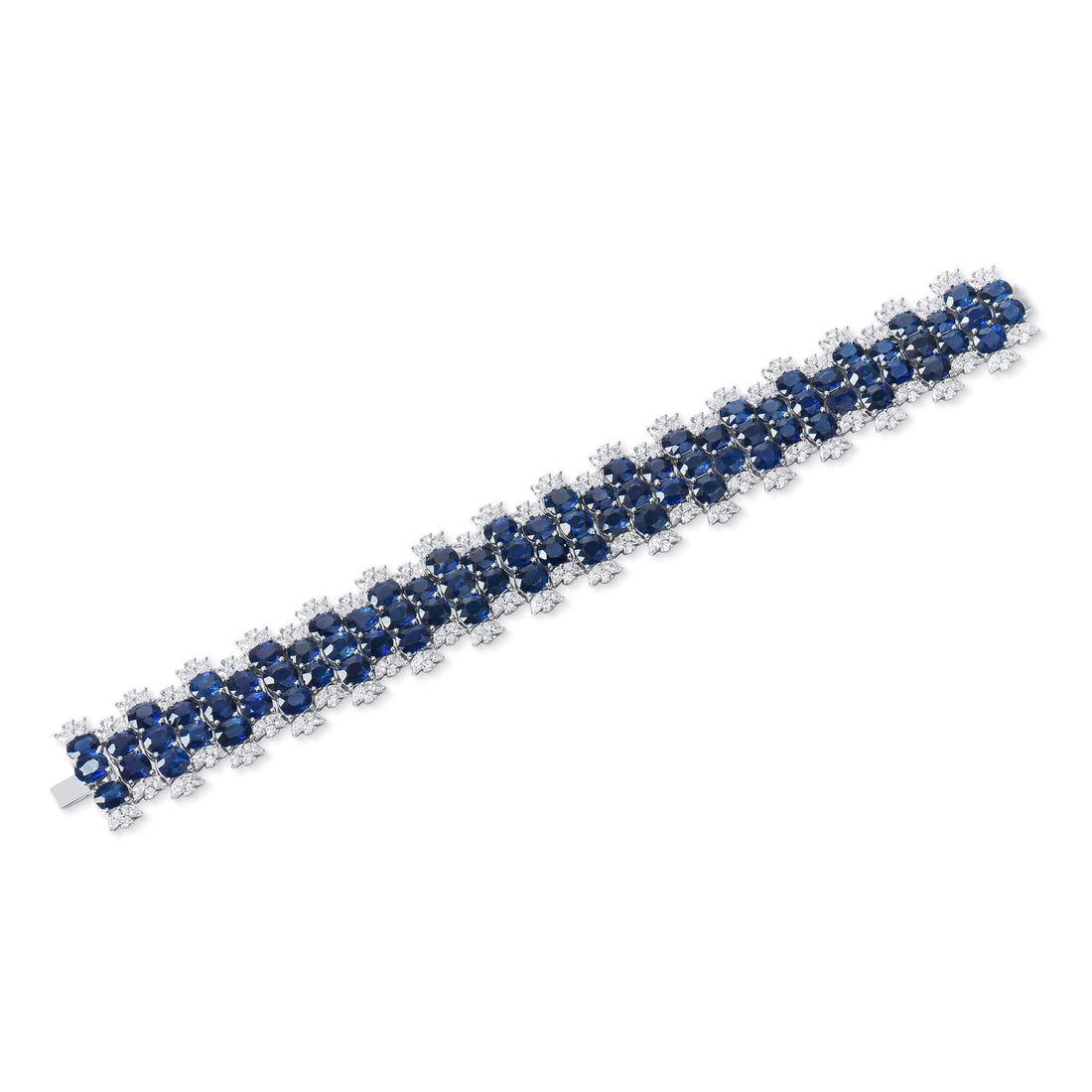 - Features 80 round vivid blue Burmese sapphires