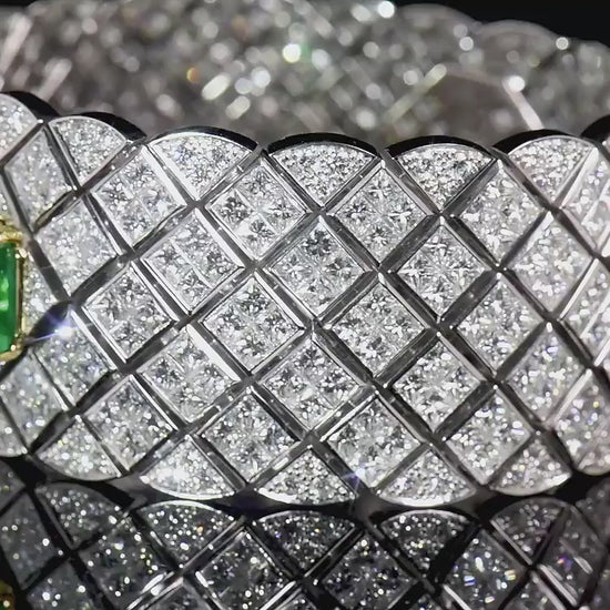 Natural Vivid Green Colombian Emerald & Diamond Bracelet