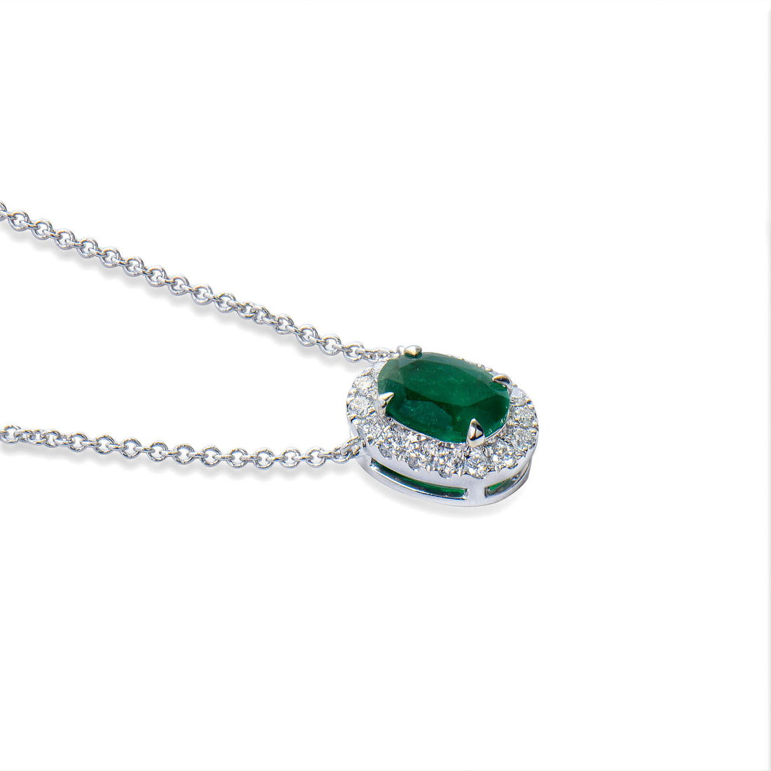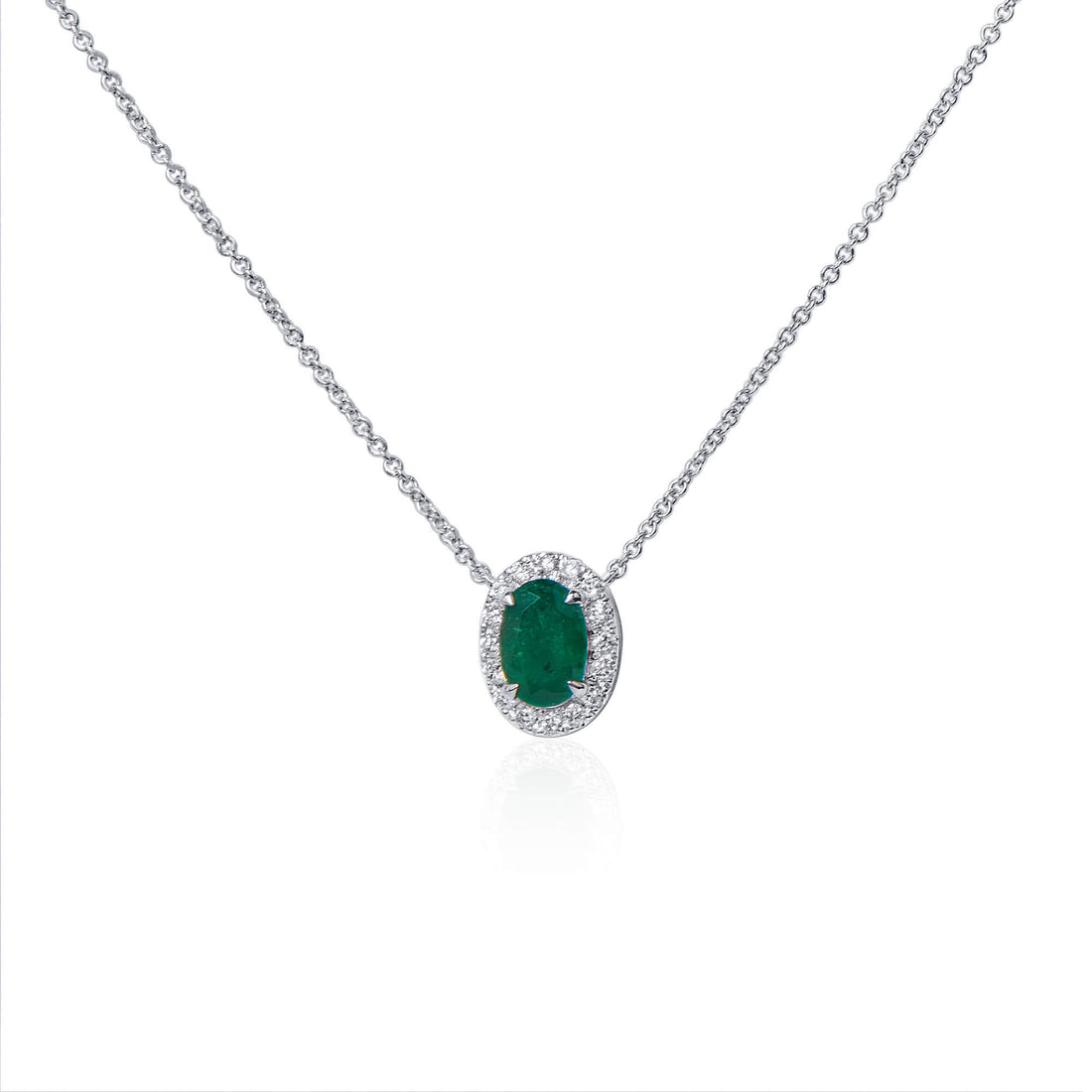 Natural Green Colombian Emerald Necklace 18K White Gold, Oval Shape, 0.72 Ct. TW