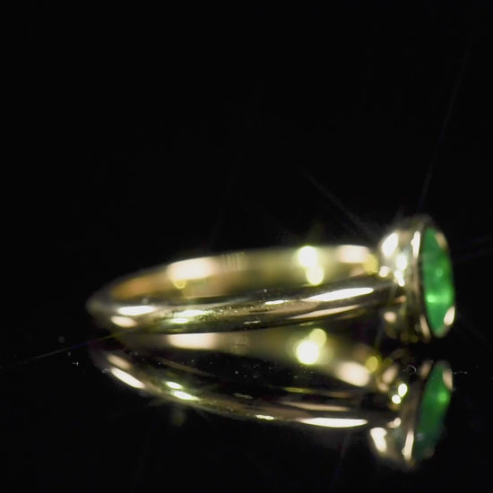 Natural Vivid Green Emerald Solitaire Ring 18K Yellow Gold, Oval Shape, 0.64 Ct. TW
