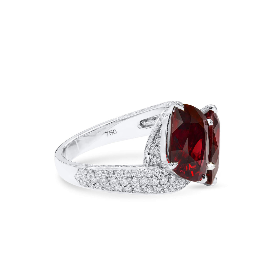 Natural Vivid Red Spinel Ring 18K White Gold, Cushion Shape, 11.62 Ct. TW