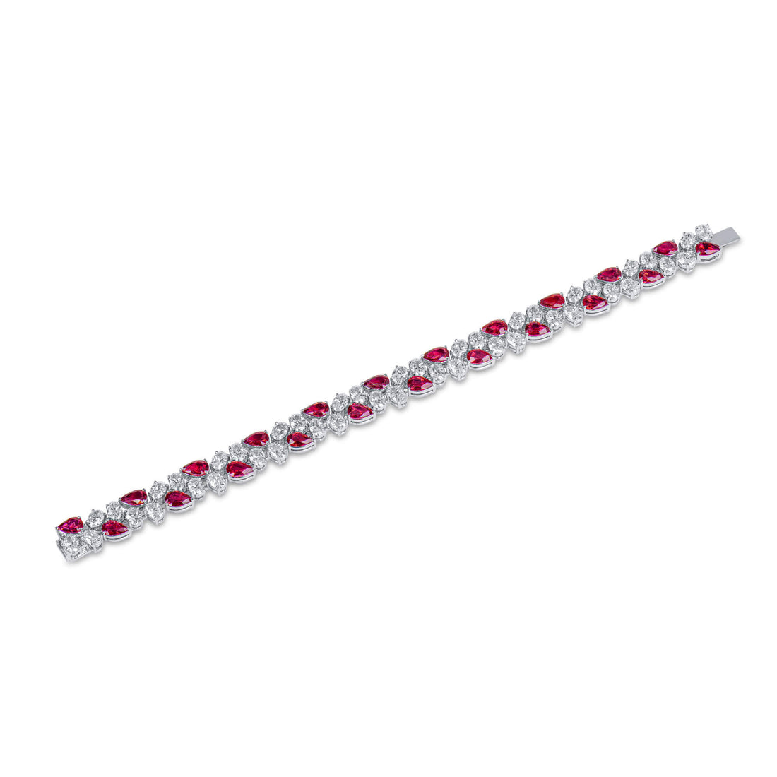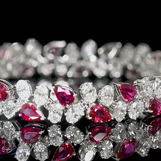 Natural Vivid Red Burmese Ruby and White Diamond Bracelet 18K White Gold, Pear Shape, 19.57 Ct. TW, unheated