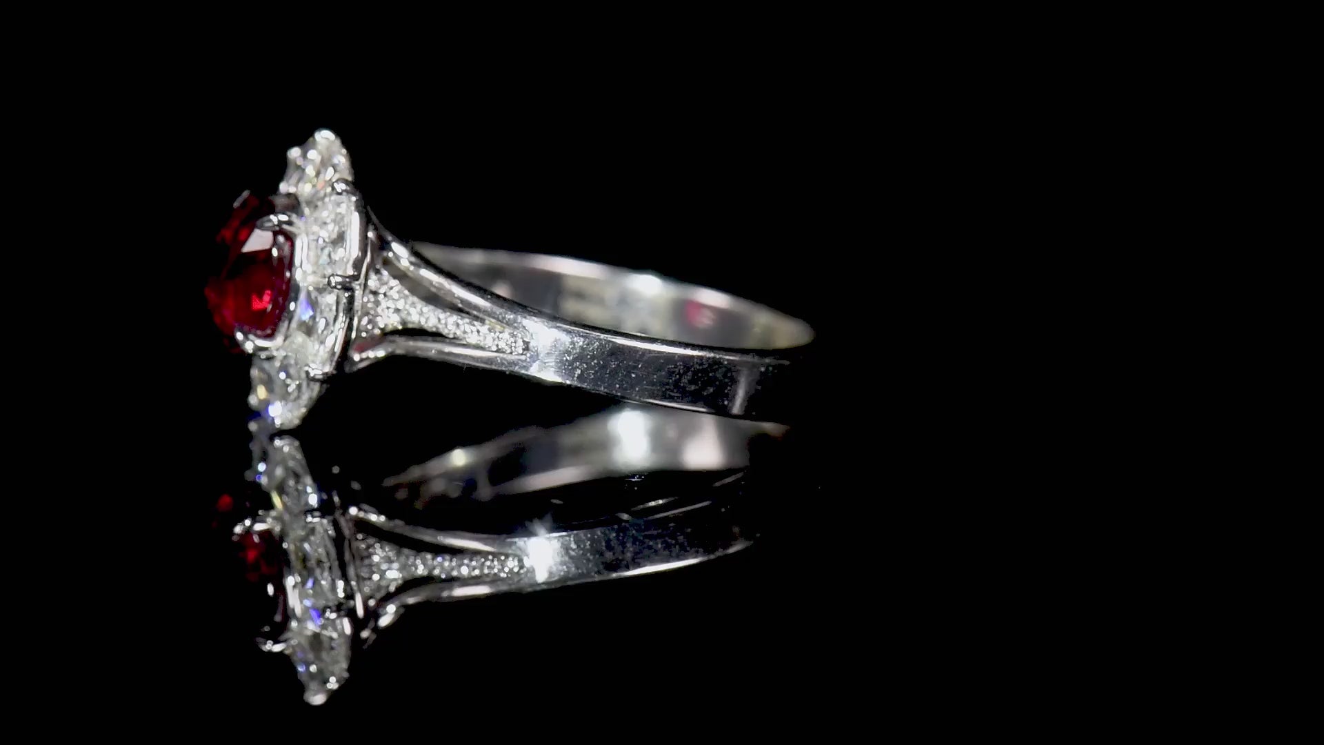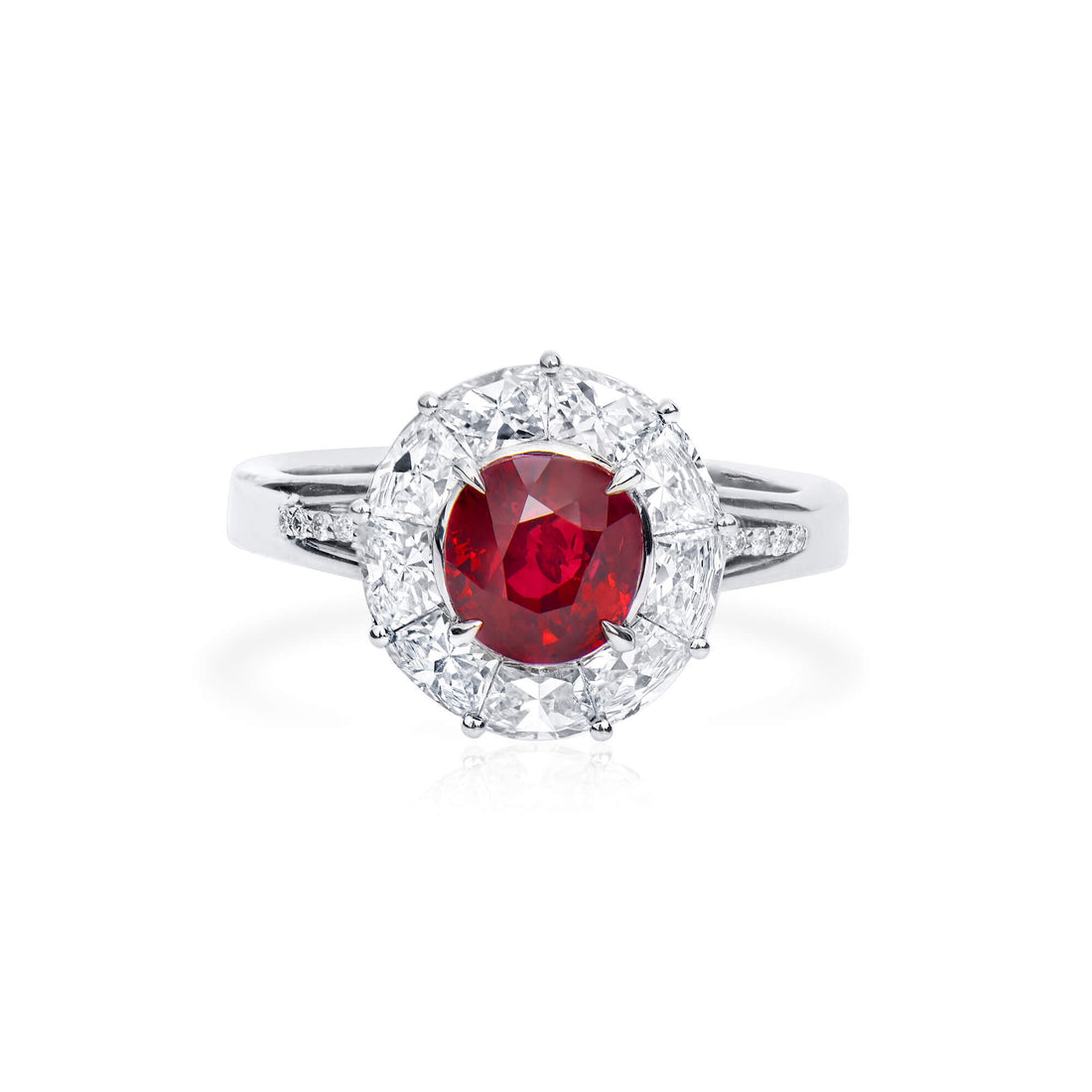 Natural Vivid Red Burmese Ruby Halo Ring