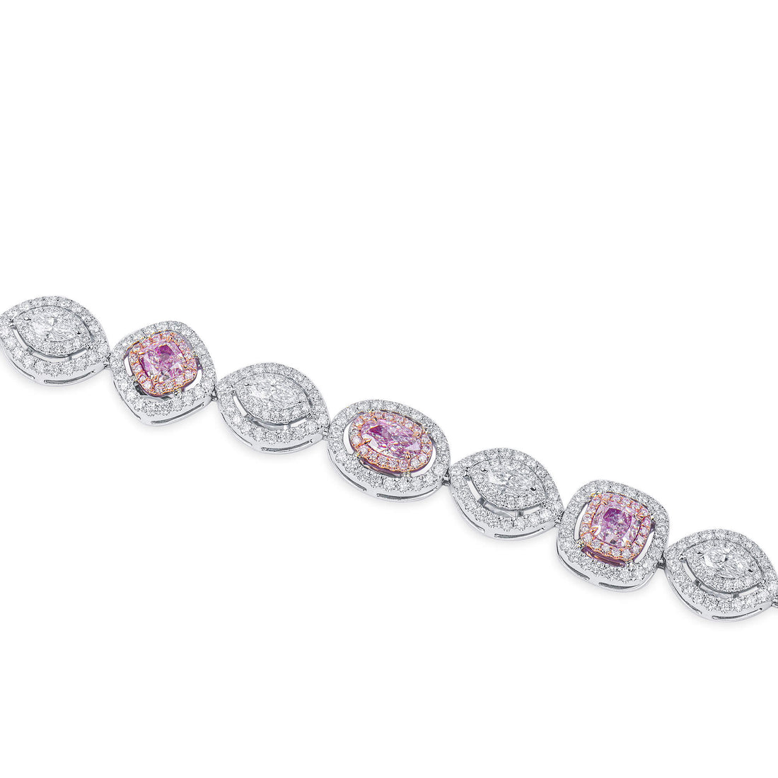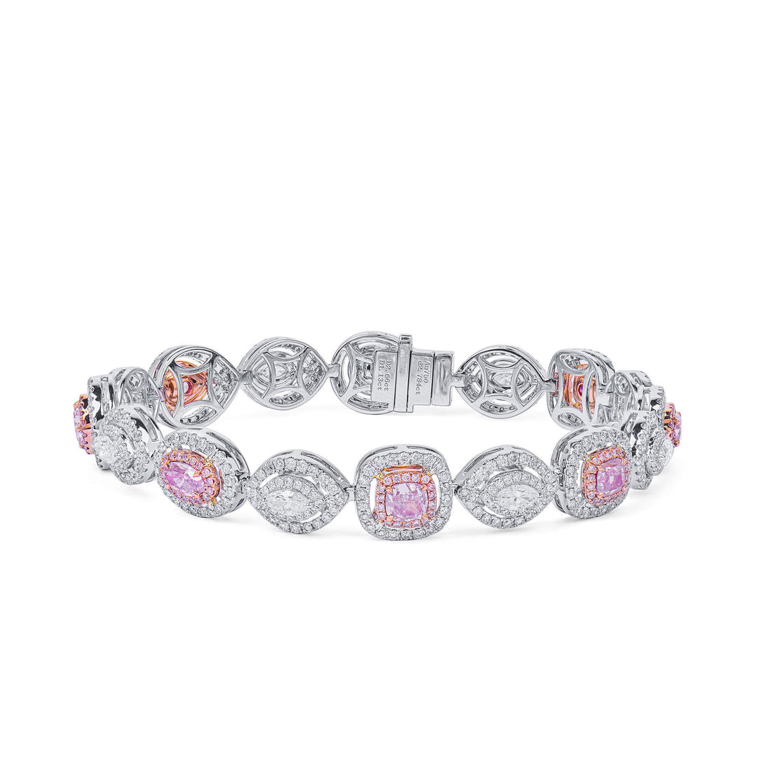 Natural Very Light Pink Diamond Bracelet 18K White & Rose Gold, Pear Shape, 6.58 Ct. TW