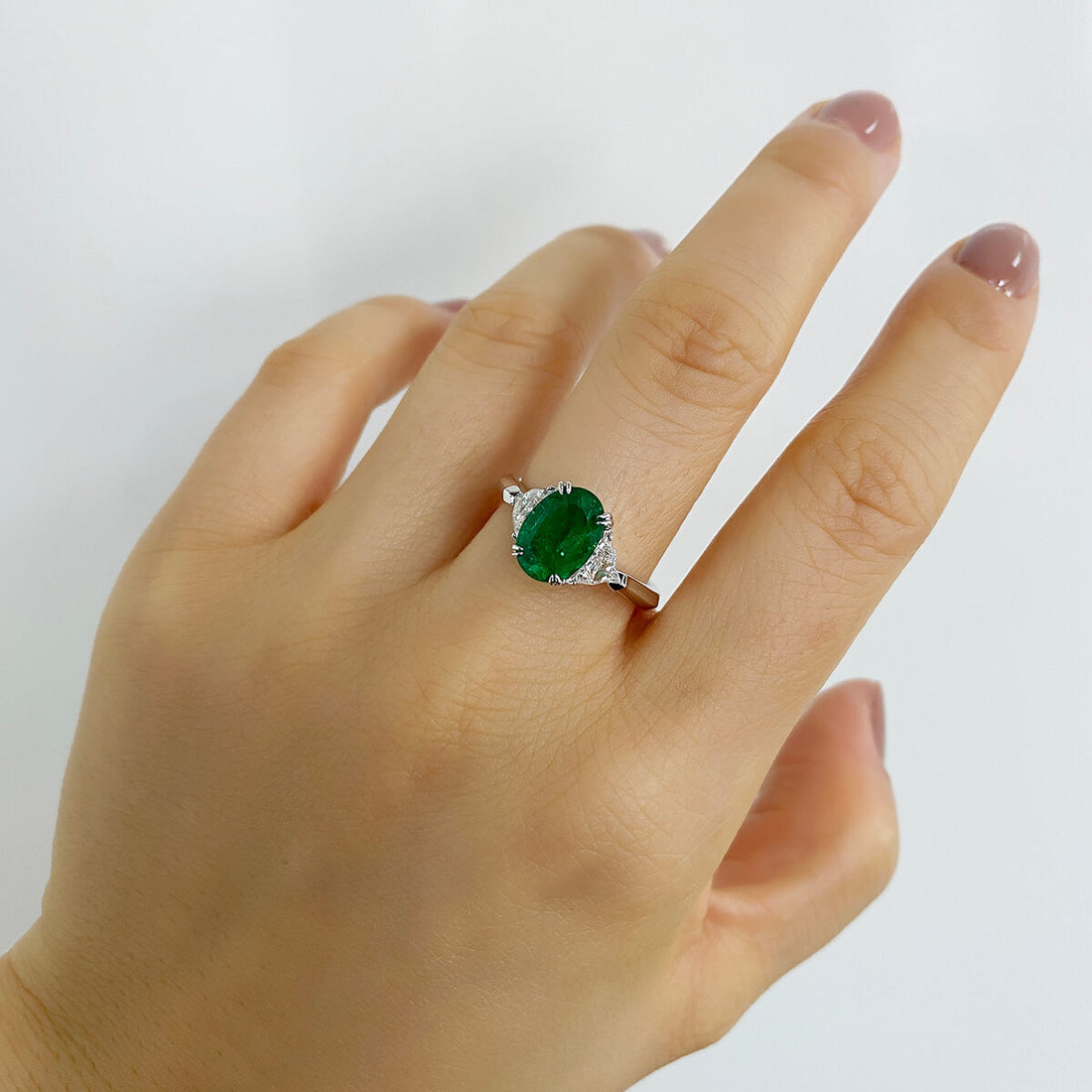 Experience the elegance of the Vivid Green Emerald and Diamond Ring, featuring a stunning oval-shaped emerald.