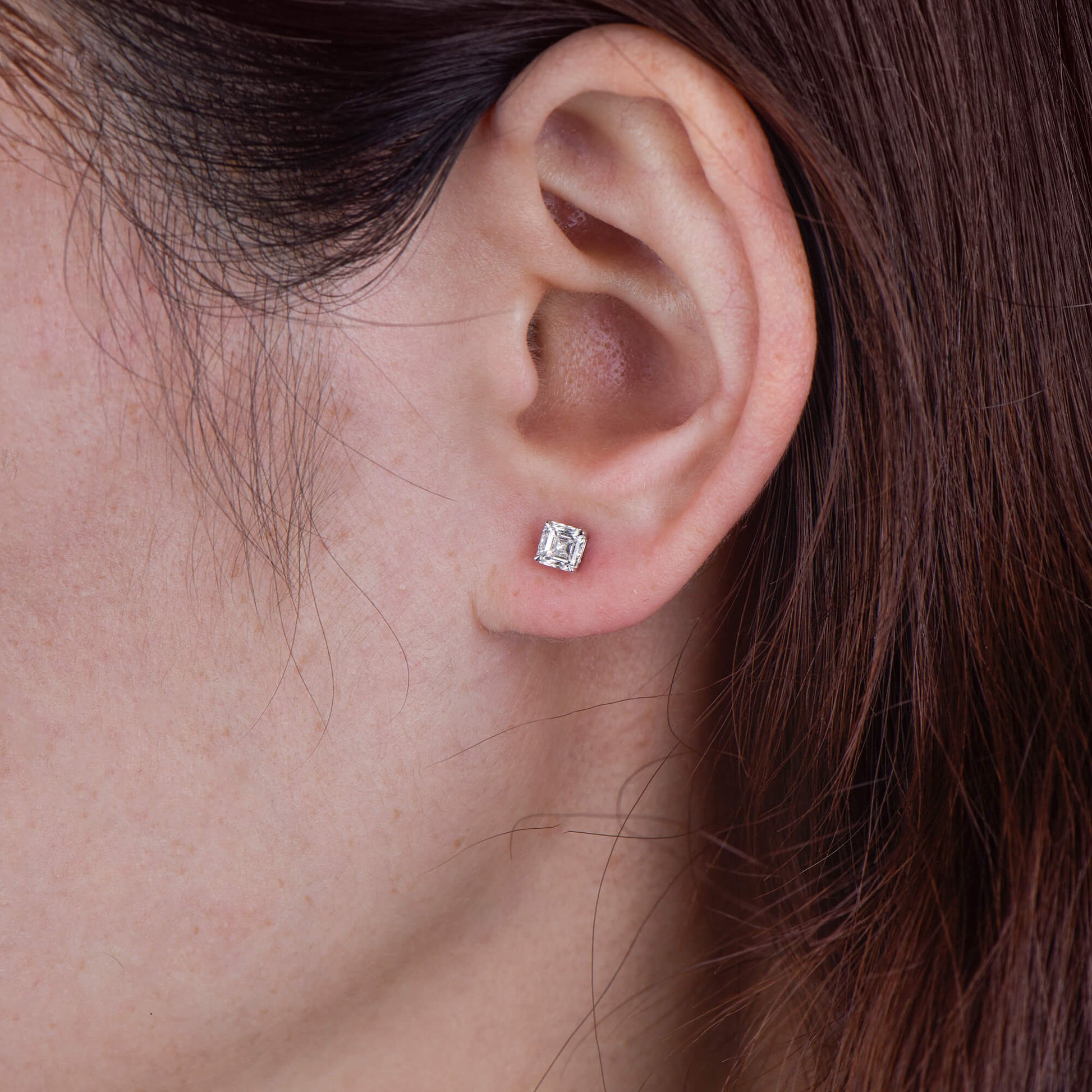 White Diamond Earrings, 1.00 Ct. TW, Asscher shape