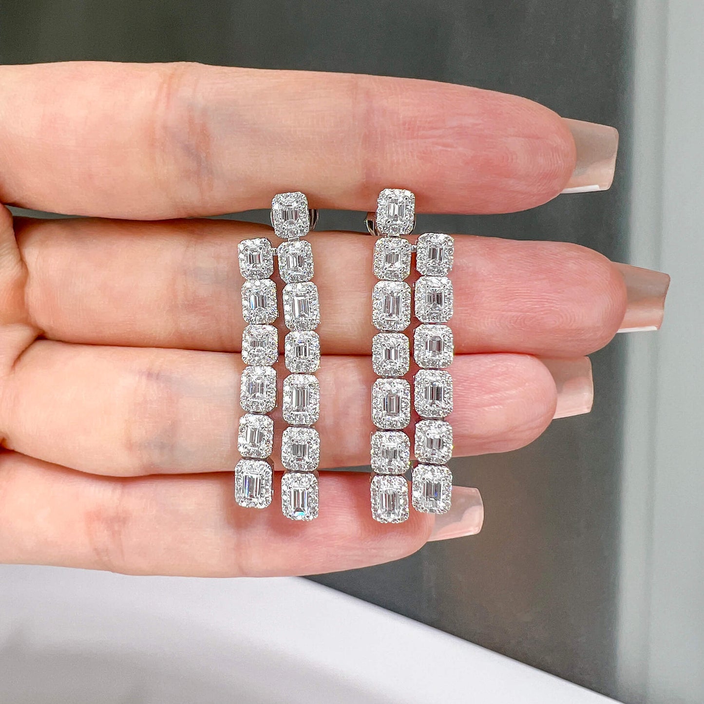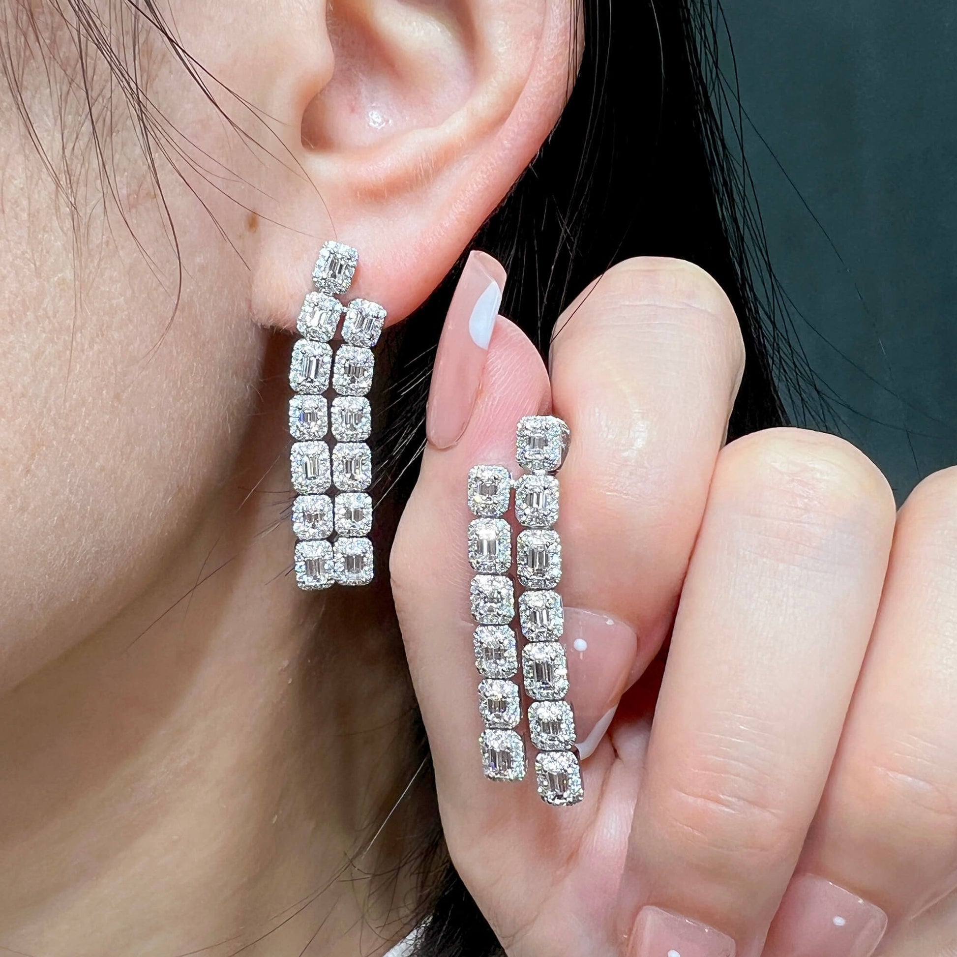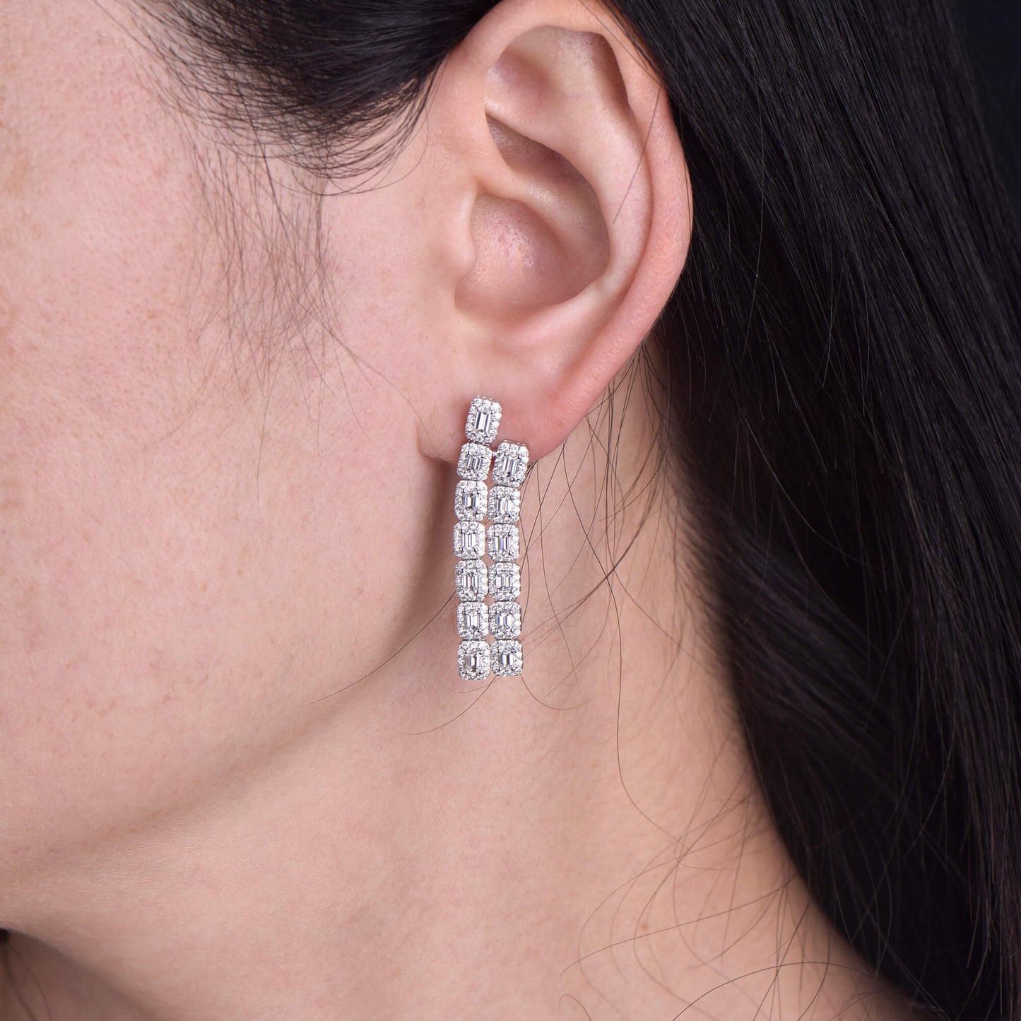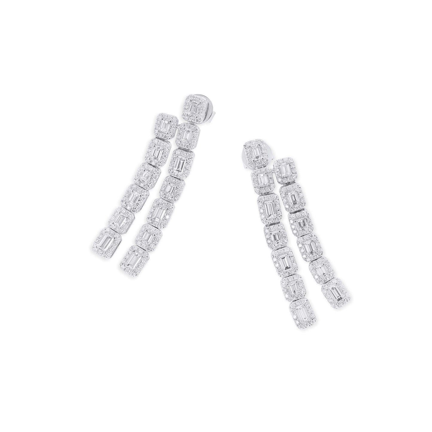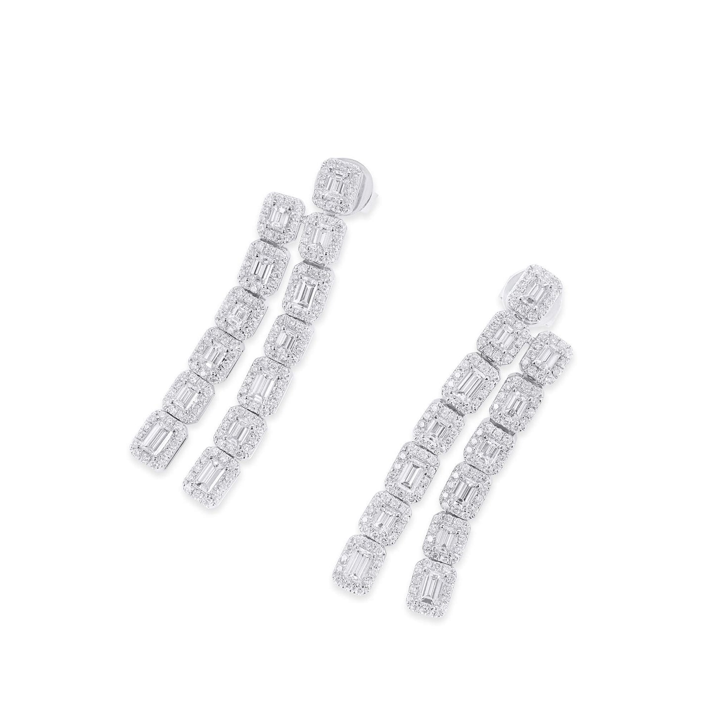 Natural Diamond Drop Earrings 18K White Gold, Baguette Shape, 3.25 Ct. TW