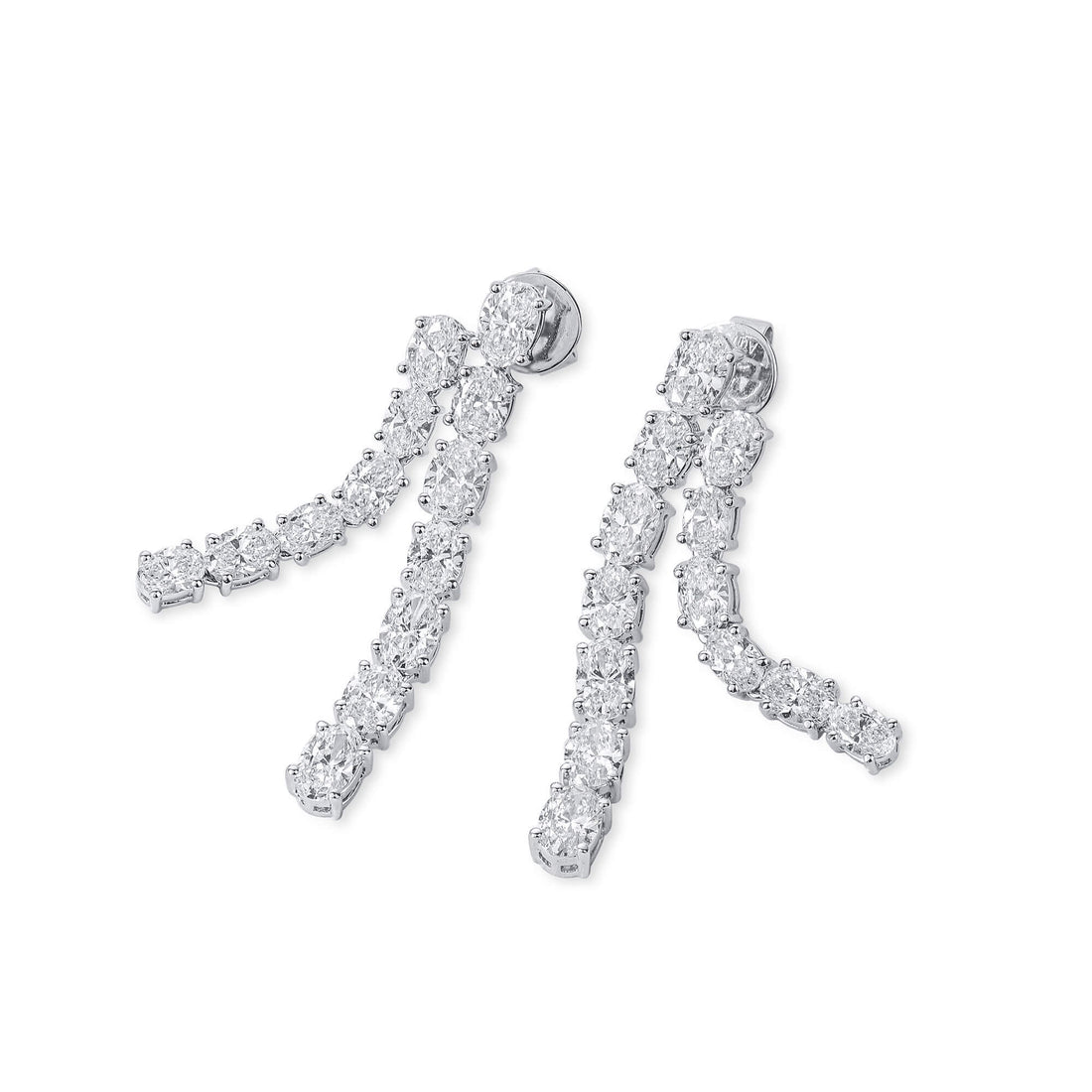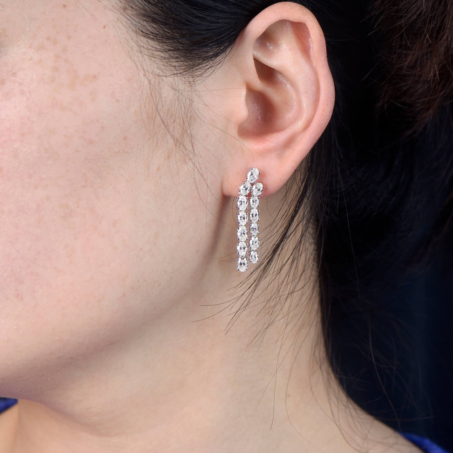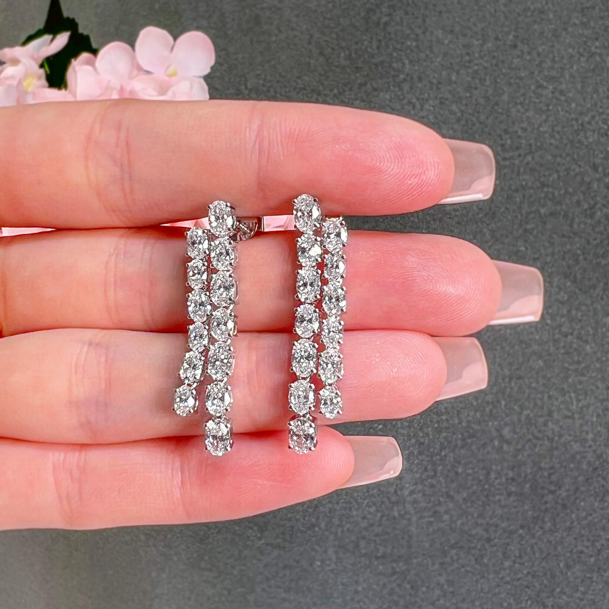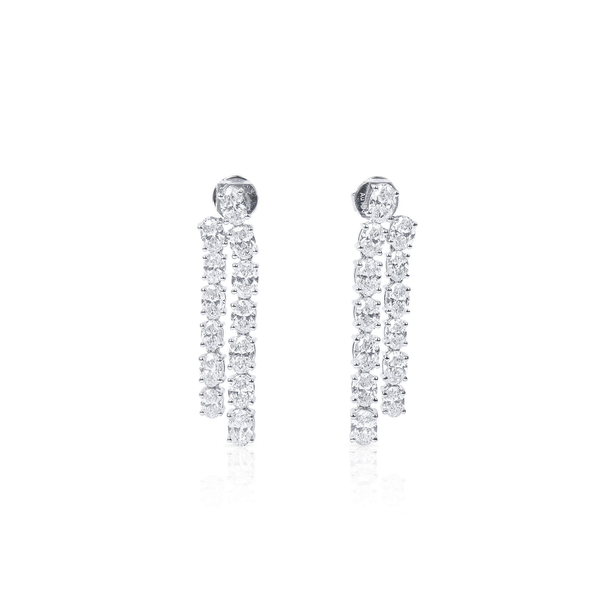 Natural Diamond Drop Earrings 18K White Gold, Oval Shape, 4.68 Ct. TW