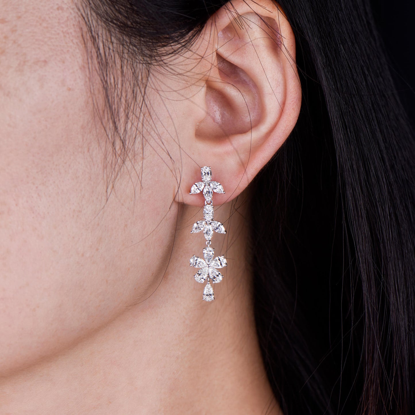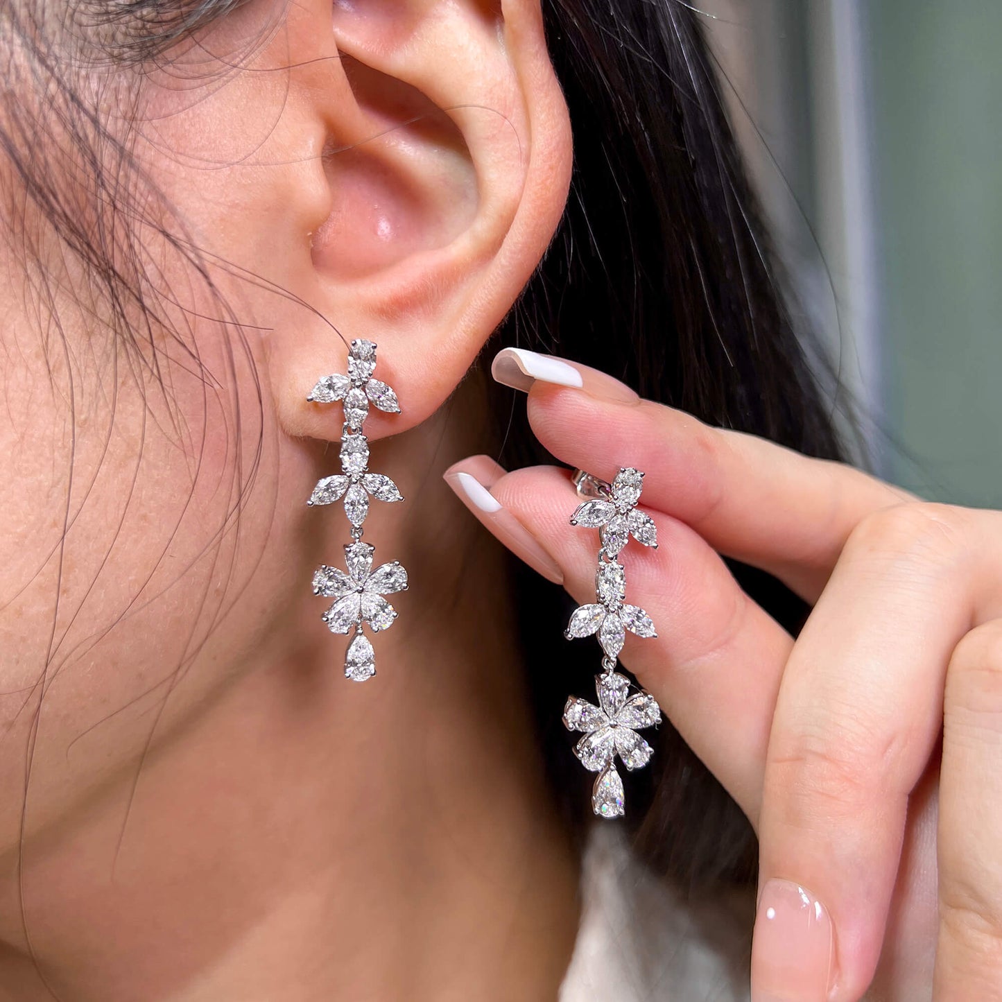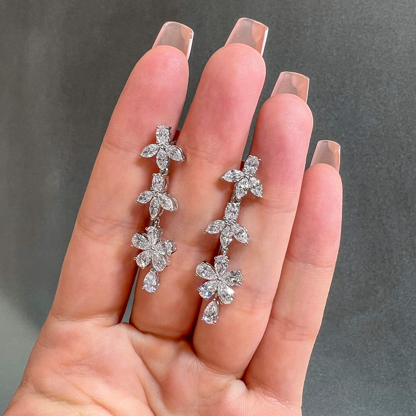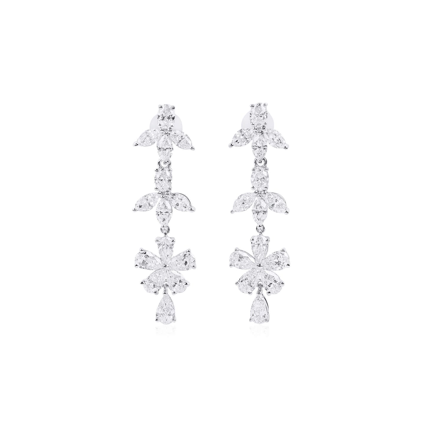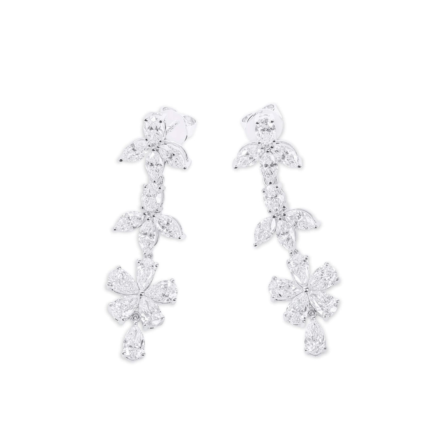 Natural Diamond Drop Earrings 18K White Gold, Marquise Shape, 4.93 Ct. TW