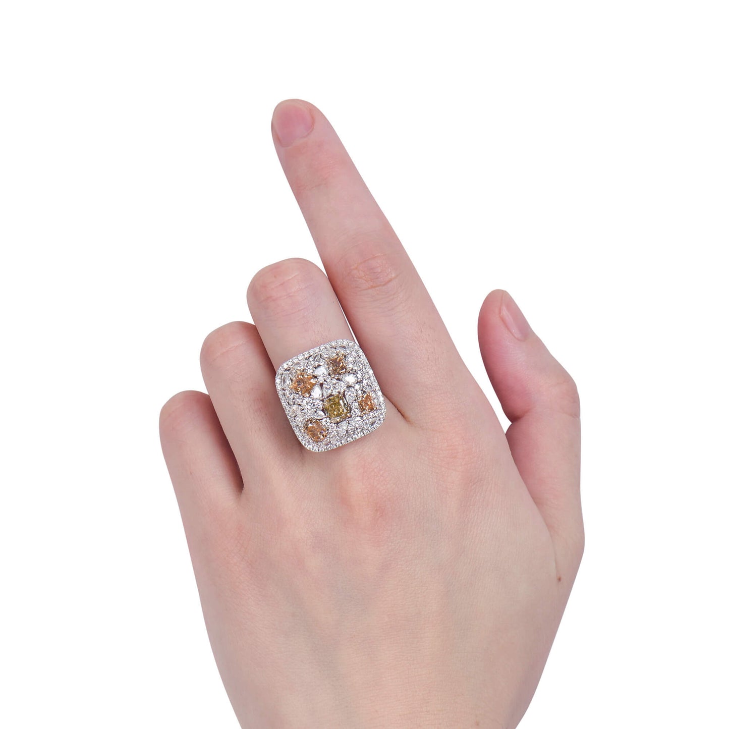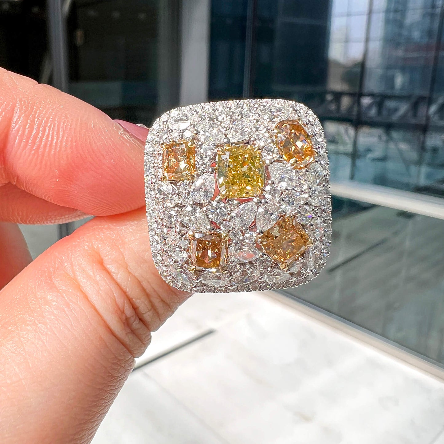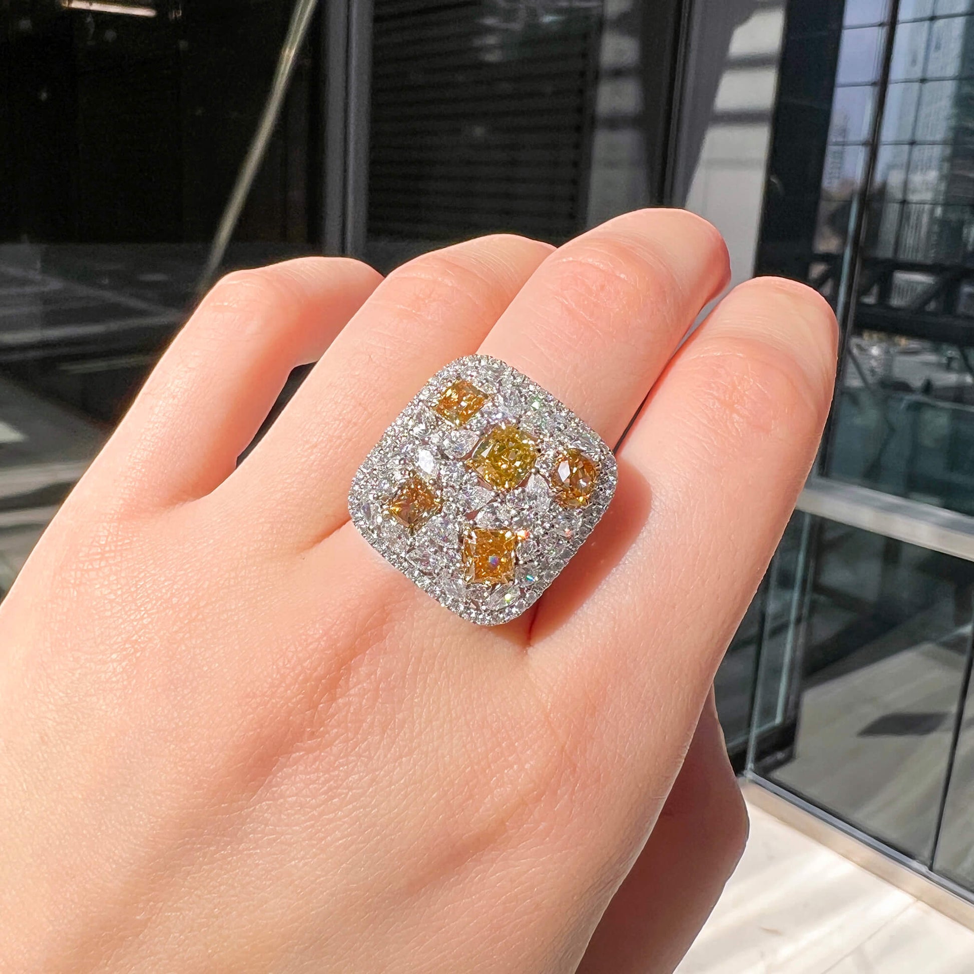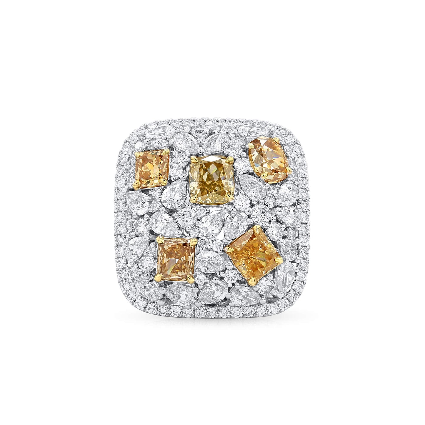 Yellow and White Diamond Ring, 6.39 CT. TW, Multishape