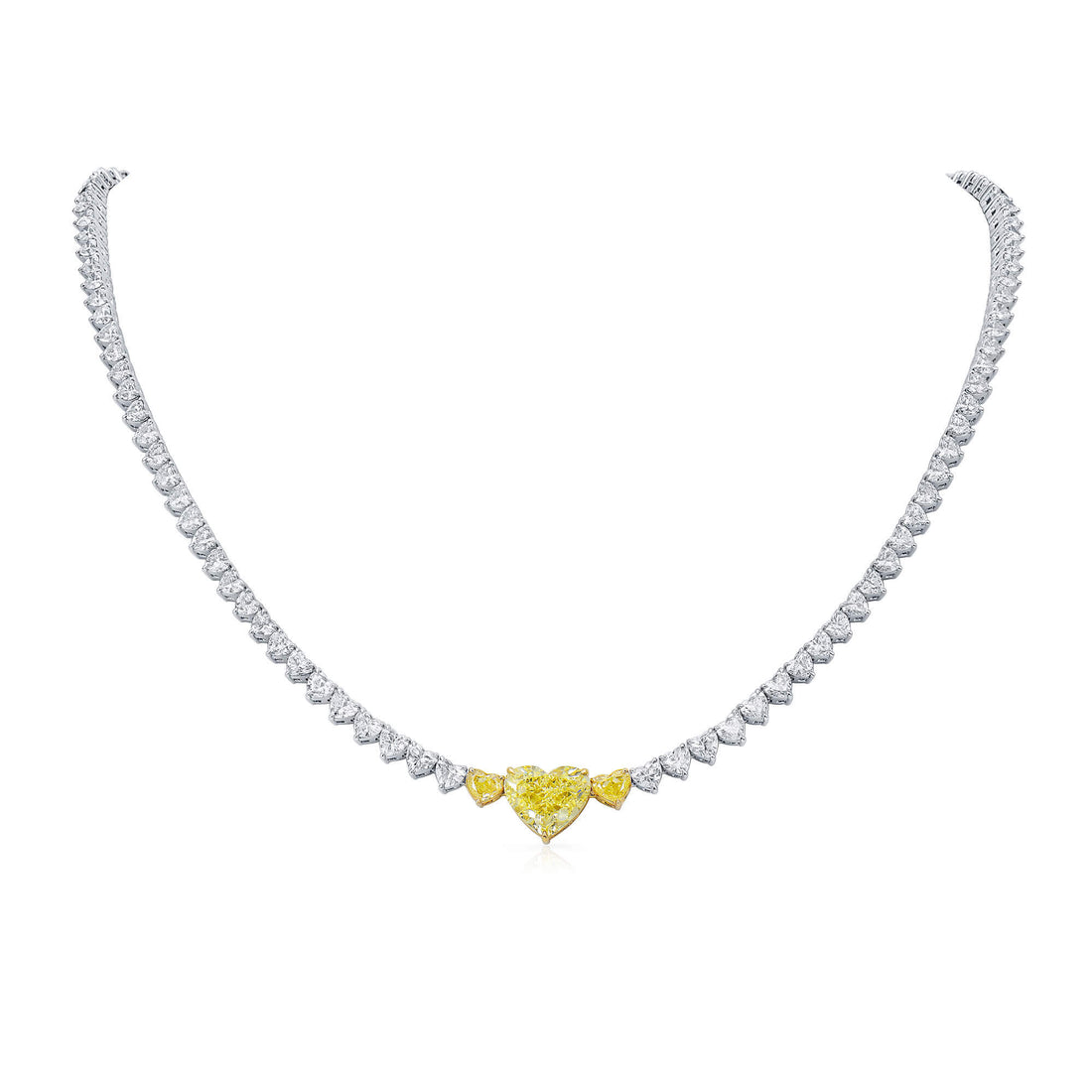 שרשרת יהלום צהוב מהודר, 16.73 קראט. TW, צורת לב, מוסמכת GIA