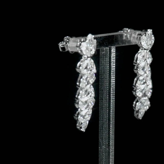 עגילי טיפה משובצים יהלומים טבעיים זהב לבן 18 קראט, צורת אגס, 6.28 קראט TW