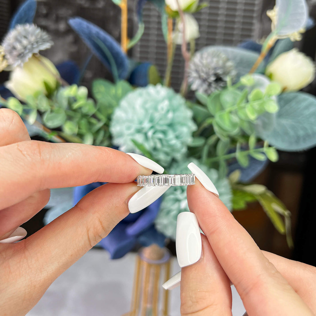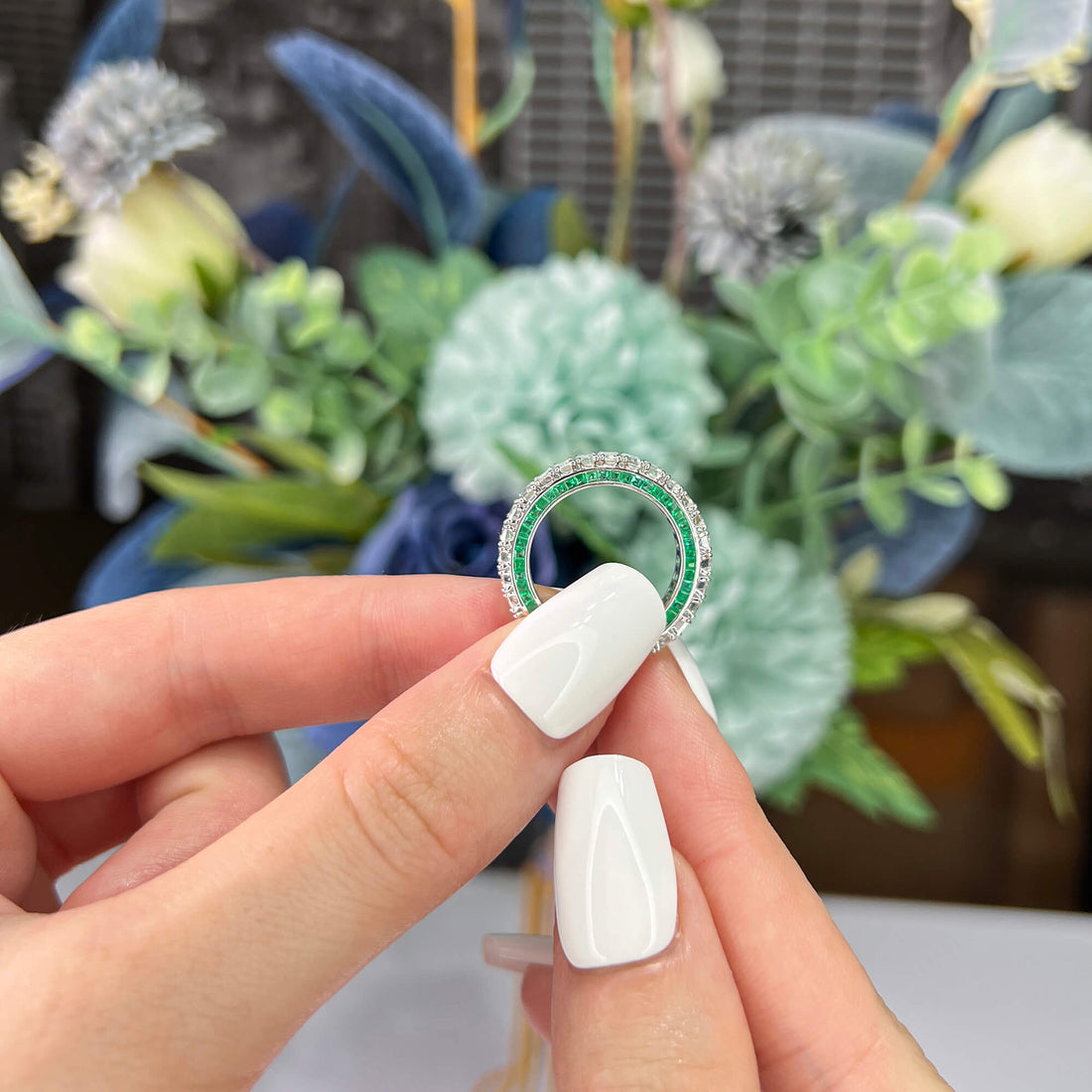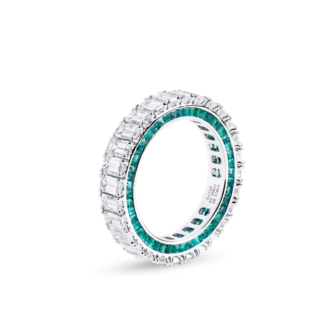 שם המוצר: טבעת נצח משובצת יהלום לבן ואמרלד, 4.11 קראט (6.46 קראט), חיתוך אמרלד