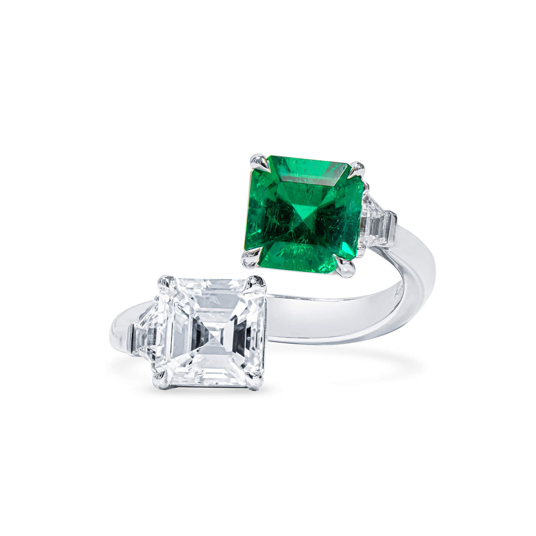 טבעת יהלום טבעית זהב לבן 18 קראט, צורת אשר, 4.37 קראט TW