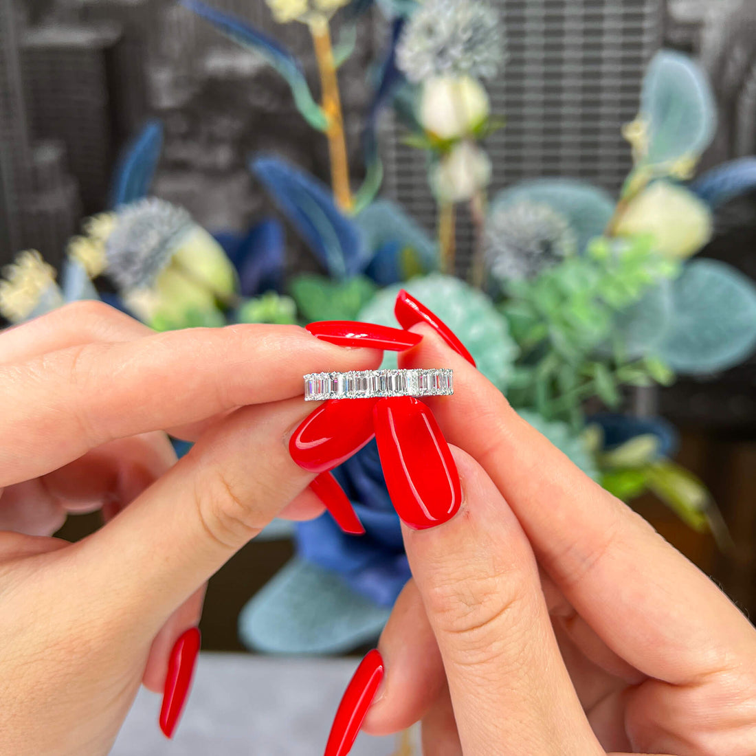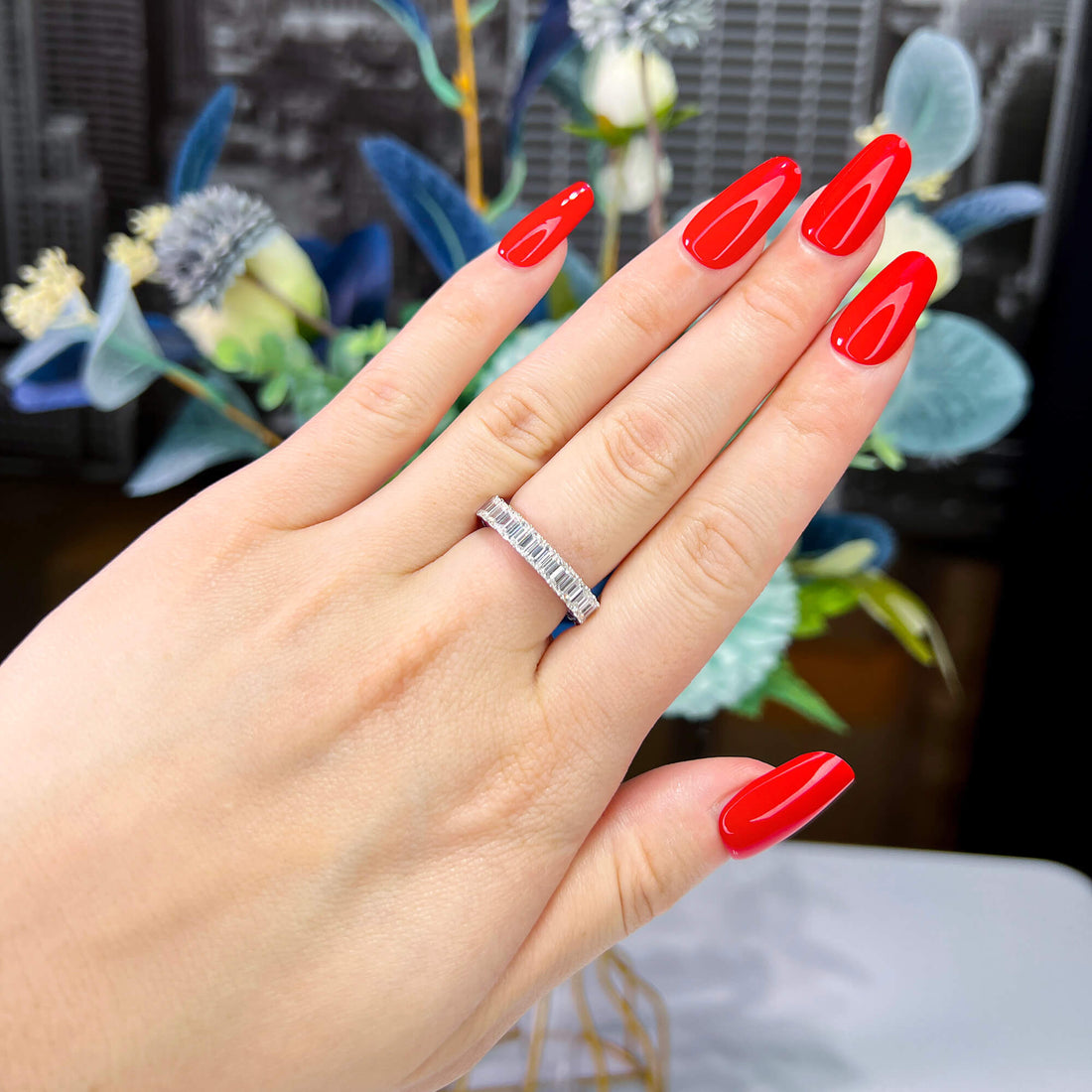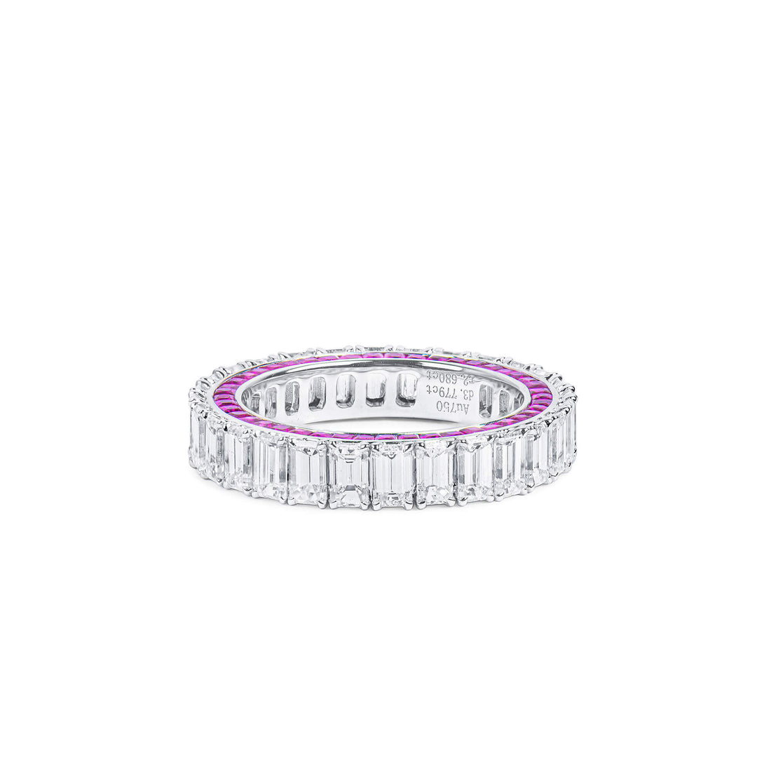 שם המוצר: טבעת נצח משובצת יהלום לבן ואודם, 3.78 קראט (6.46 קראט), חיתוך אמרלד