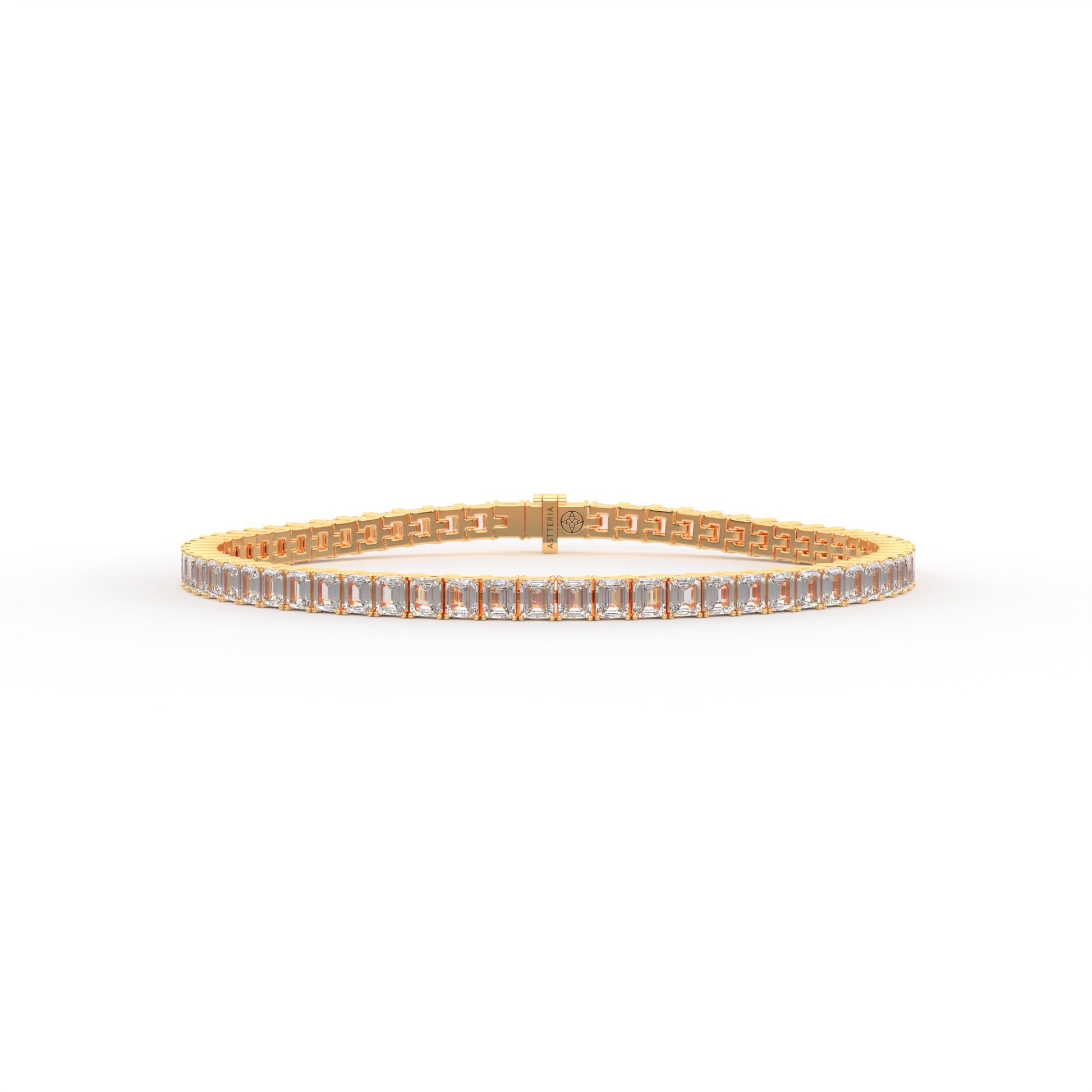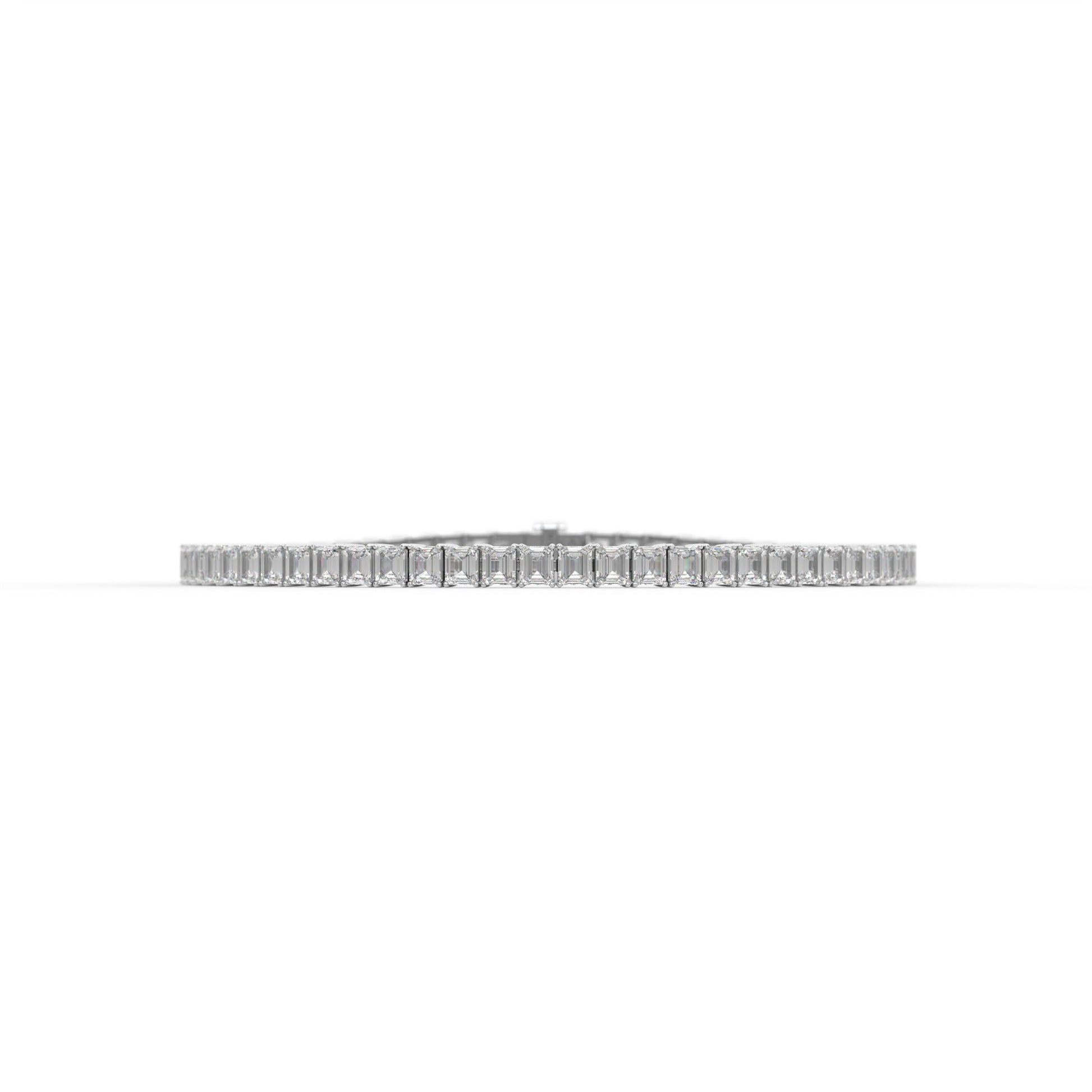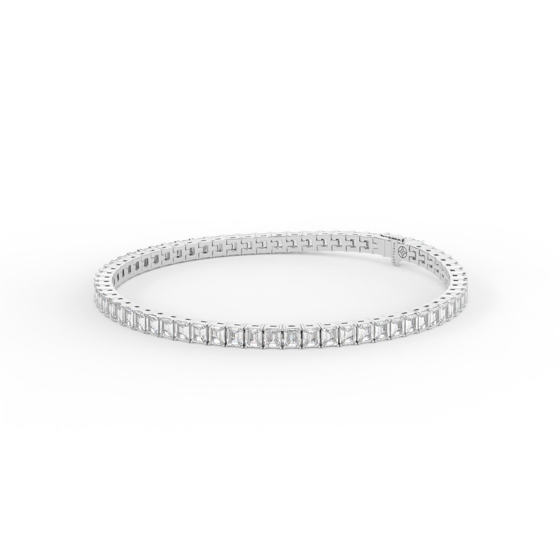 - Crafted as a classic tennis bracelet set with natural emerald-cut diamonds in fine D–F color