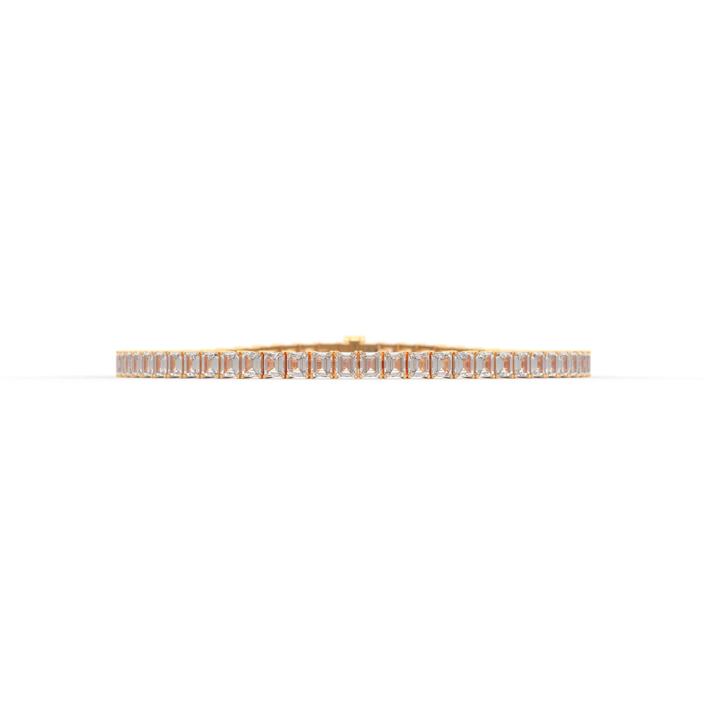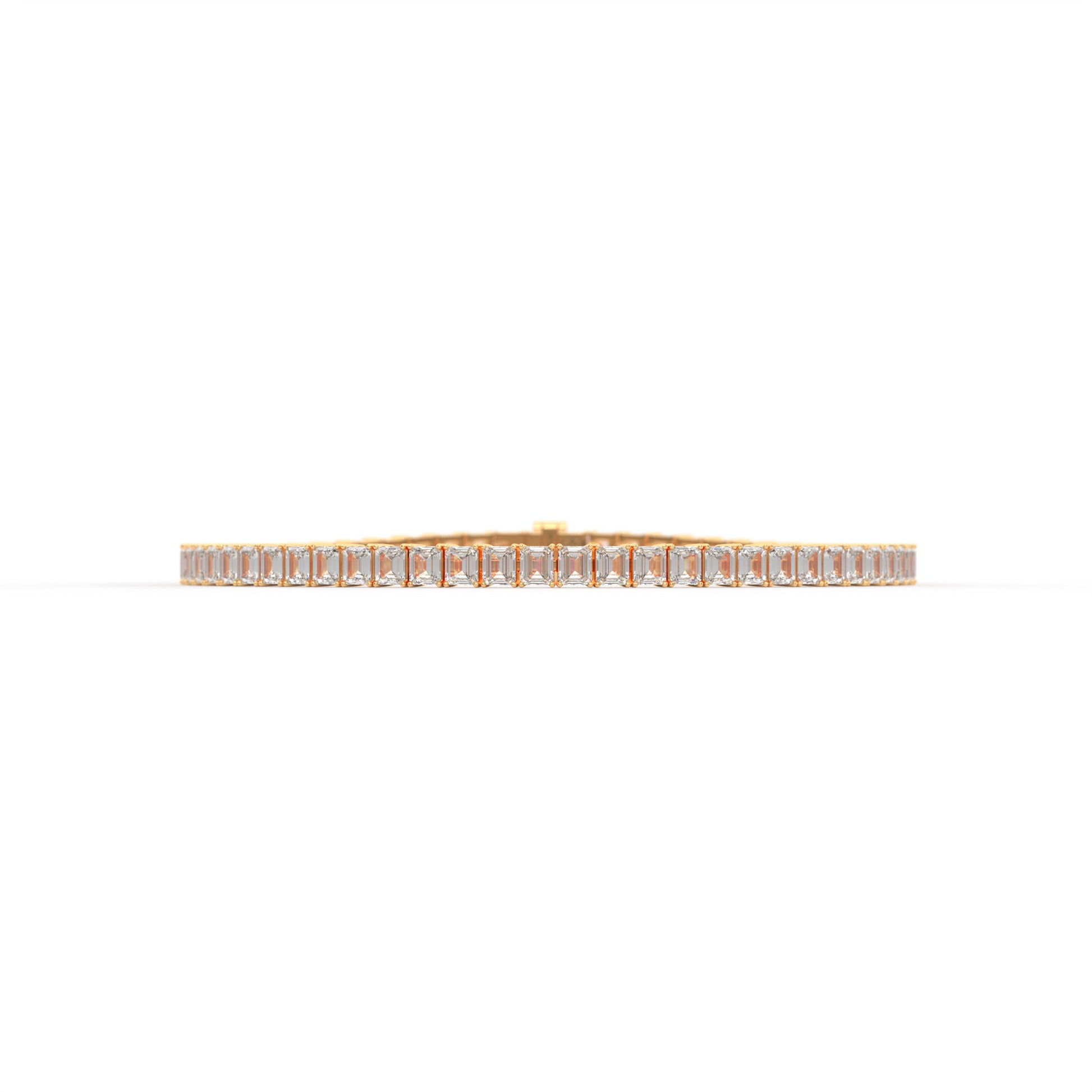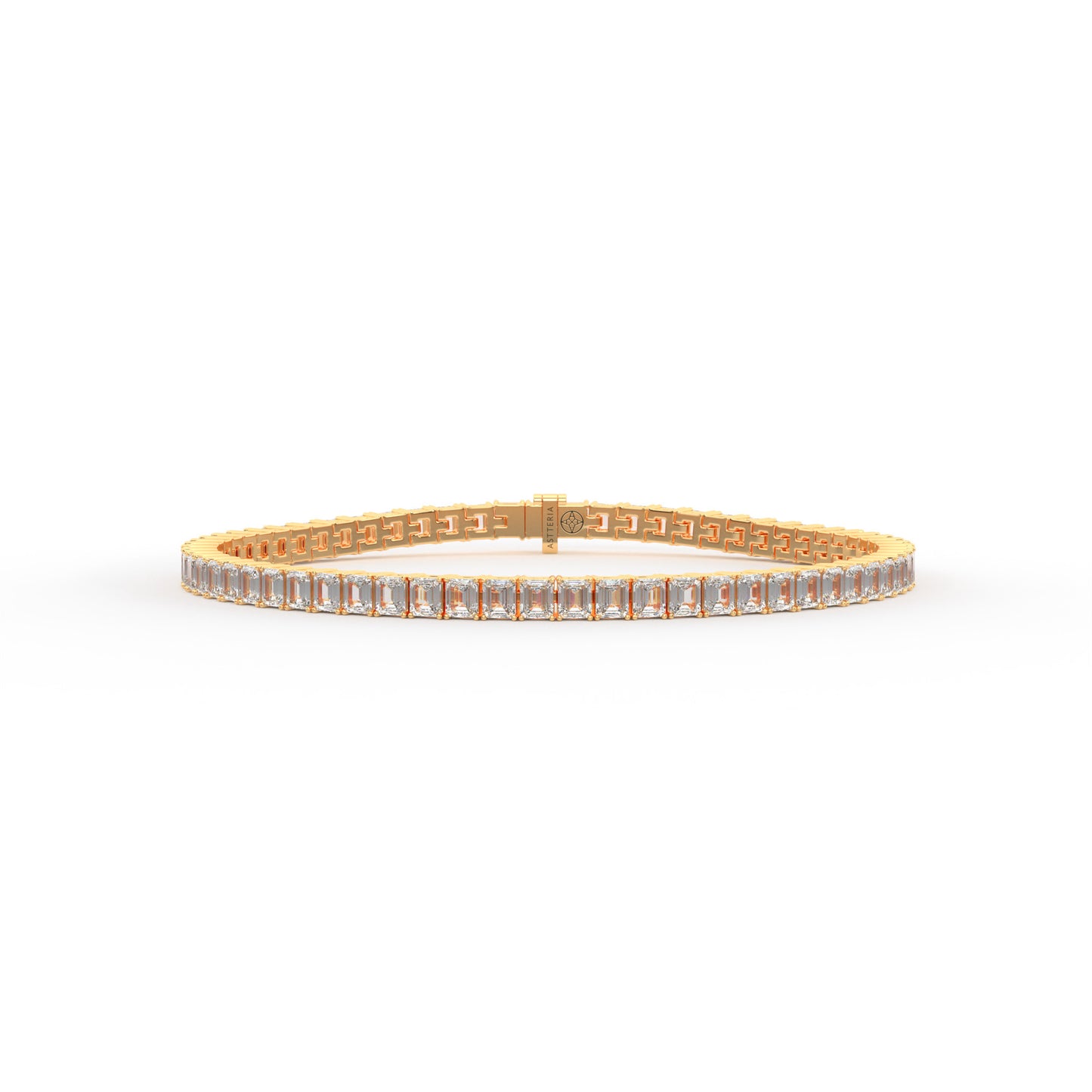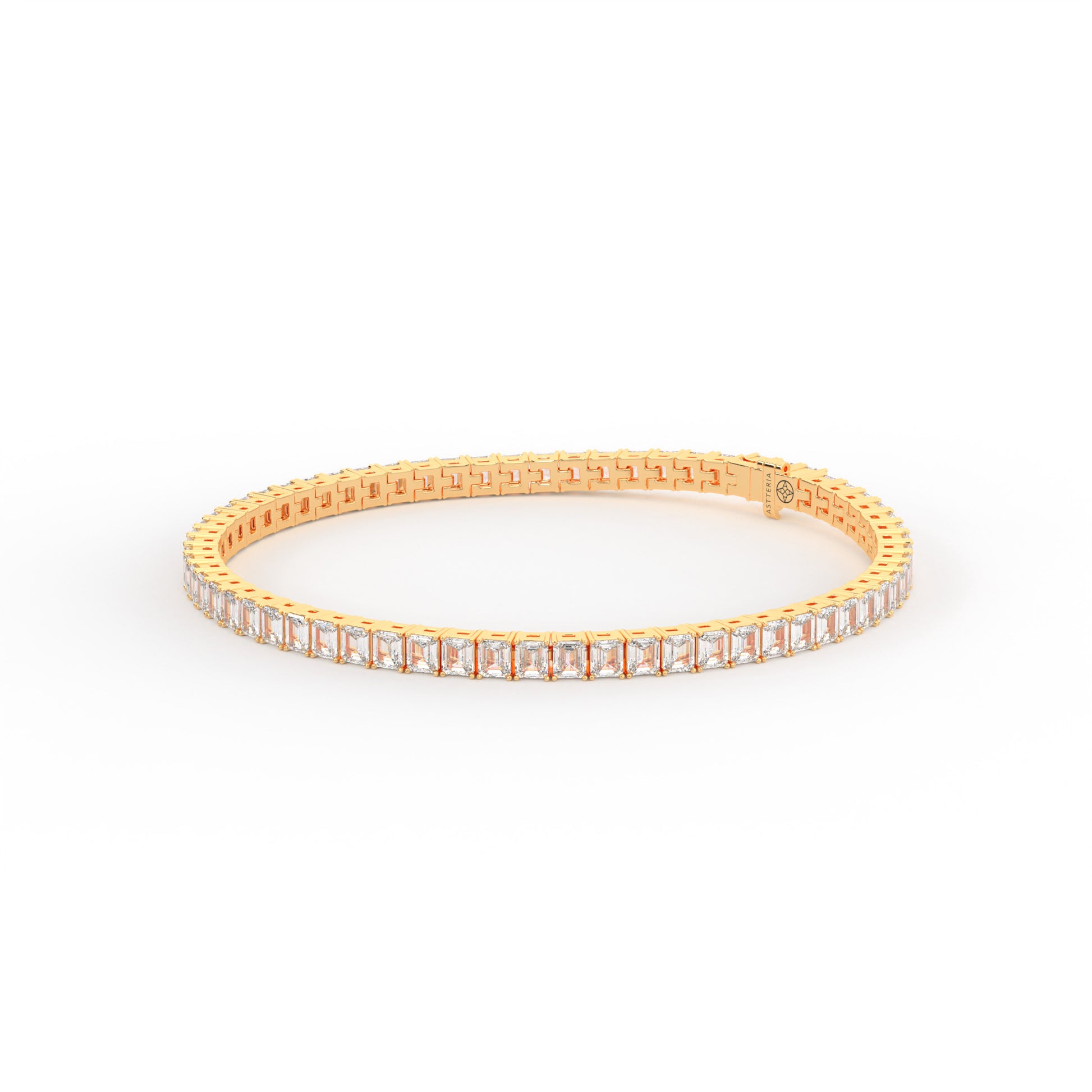 - Crafted as a classic tennis bracelet set with natural emerald-cut diamonds in fine D–F color