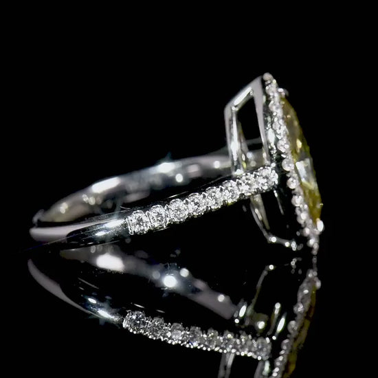 Natural Fancy Brownish Yellow Diamond Halo Ring 18K White Gold, Marquise Shape, 2.49 Ct. TW