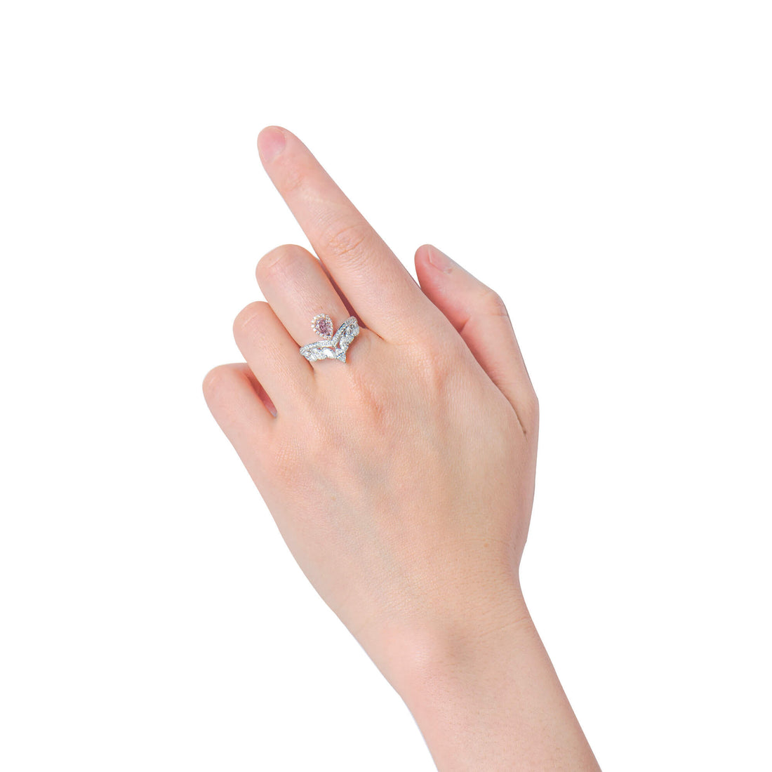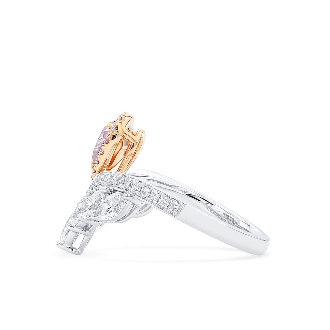 奇特紫粉色钻石戒指,1.68克拉总重,梨形,GIA认证