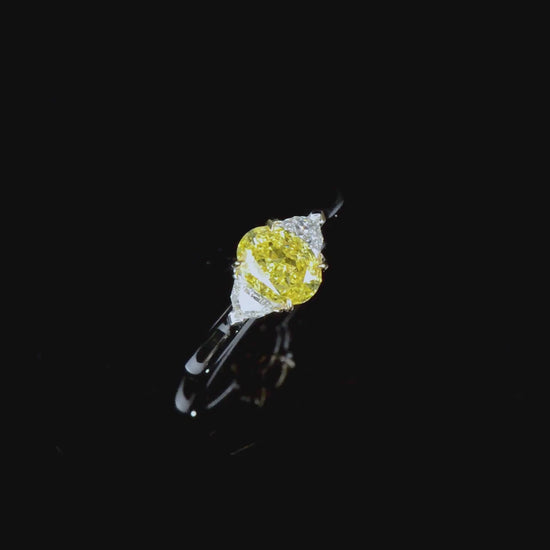 鲜艳的黄色钻石戒指,1.60克拉总重,椭圆形,GIA认证