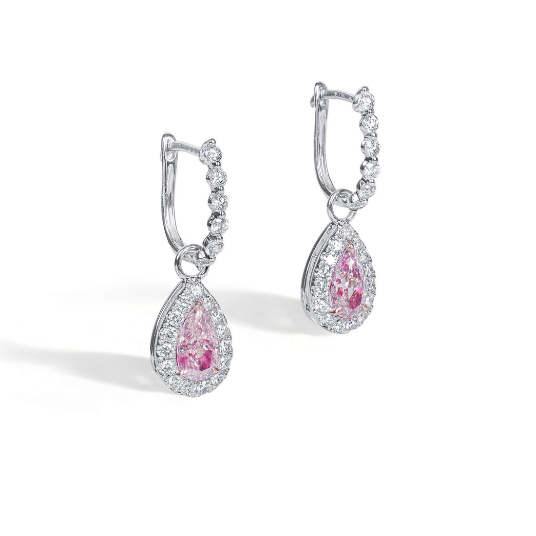 Light Pink Diamond Earrings, 1.60 Ct. TW, Pear shape, GIA Certified