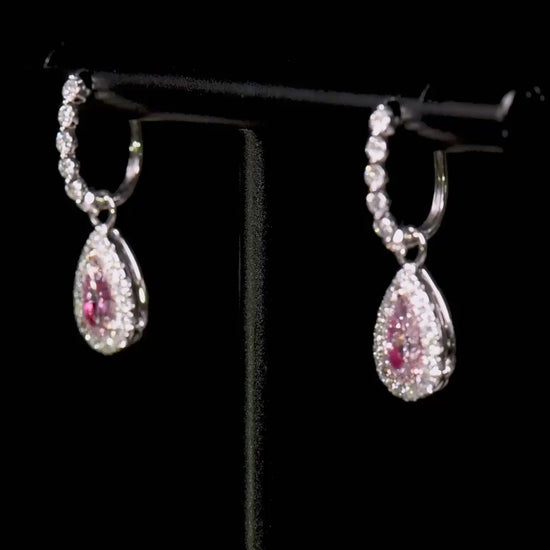 Natural Light Pink Diamond Drop Earrings 18K White & Rose Gold, Pear Shape, 1.60 Ct. TW