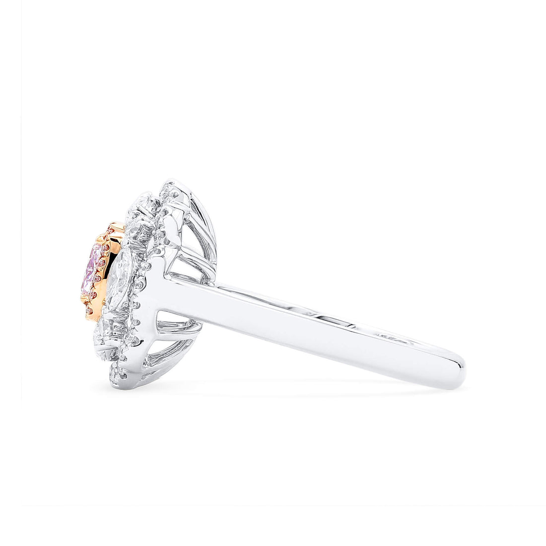 沉醉于我们天然钻石戒指的迷人之美,散发着精致优雅的魅力。戒指中央镶嵌着一颗令人惊艳的枕形、淡粉色粉钻,重0.50克拉,经GIA认证,认证编号为2406197037。四周环绕着重0.83克拉的粉钻和白钻,为整个设计增添了夺目的对比和璀璨的光芒。这枚戒指总重1.33克拉,完美诠释了优雅与时尚。这款戒指采用18K白金和玫瑰金精制而成,不仅仅是一件珠宝,更是一件永恒的艺术品,将以无与伦比的美感点缀您的指间。
